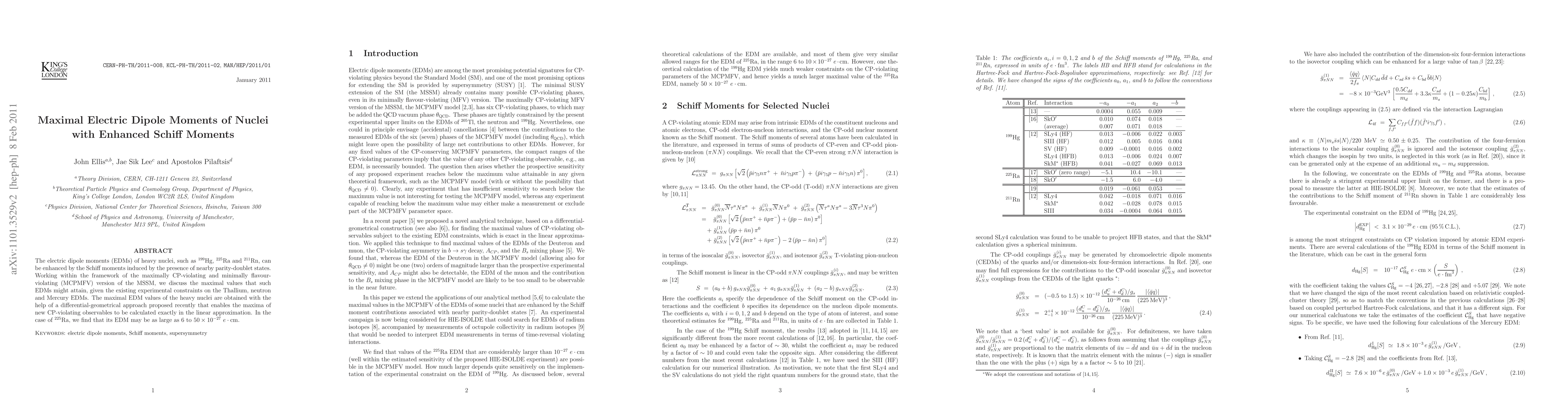This paper explores the maximal electric dipole moments (EDMs) of heavy nuclei like 199Hg, 225Ra, and 211Rn, enhanced by Schiff moments due to nearby parity-doublet states. It calculates these maximal EDM values within the MCPMFV MSSM framework, finding that 225Ra's EDM could reach up to 6 to 50 x 10^{-27} e.cm.