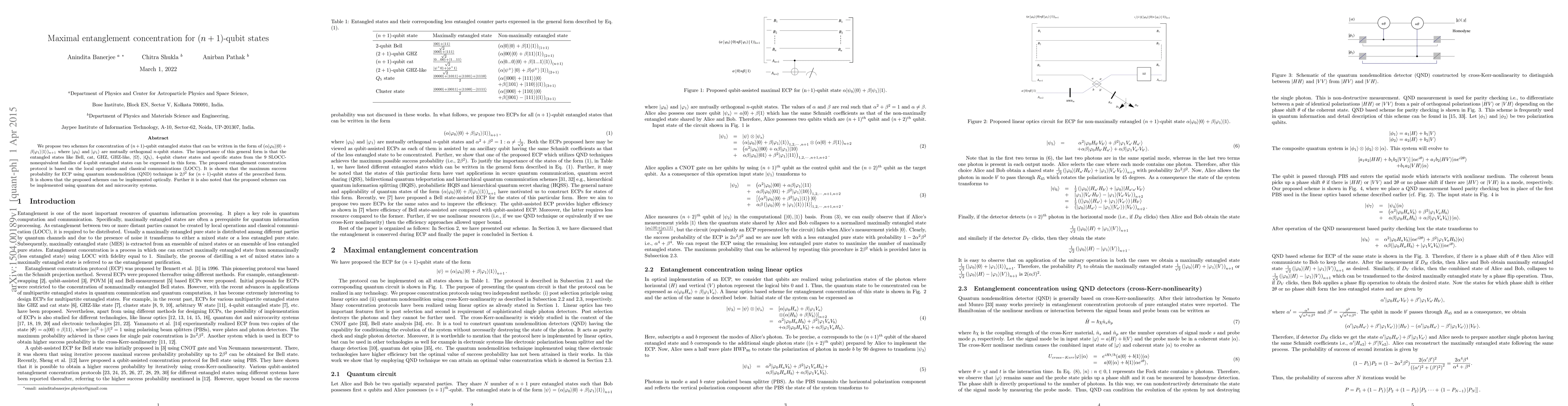 This paper proposes two schemes for concentrating $(n+1)$-qubit entangled states expressed in a specific form, utilizing local operations and classical communications. The maximum success probability for the entanglement concentration protocol is determined to be $2\beta^{2}$, and the schemes are noted to be implementable using optical and quantum dot systems.