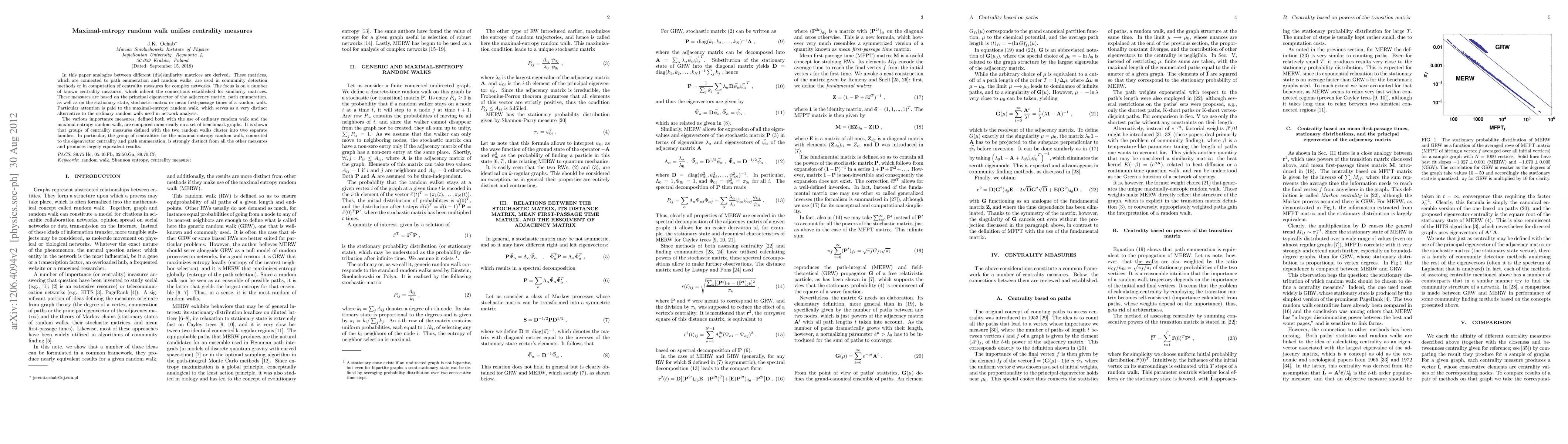 This paper explores the connections between various centrality measures in complex networks, showing that they can be unified through the lens of random walks. It highlights the maximal-entropy random walk as a distinct alternative to the ordinary random walk, demonstrating that centrality measures derived from it form a unique and distinct family.