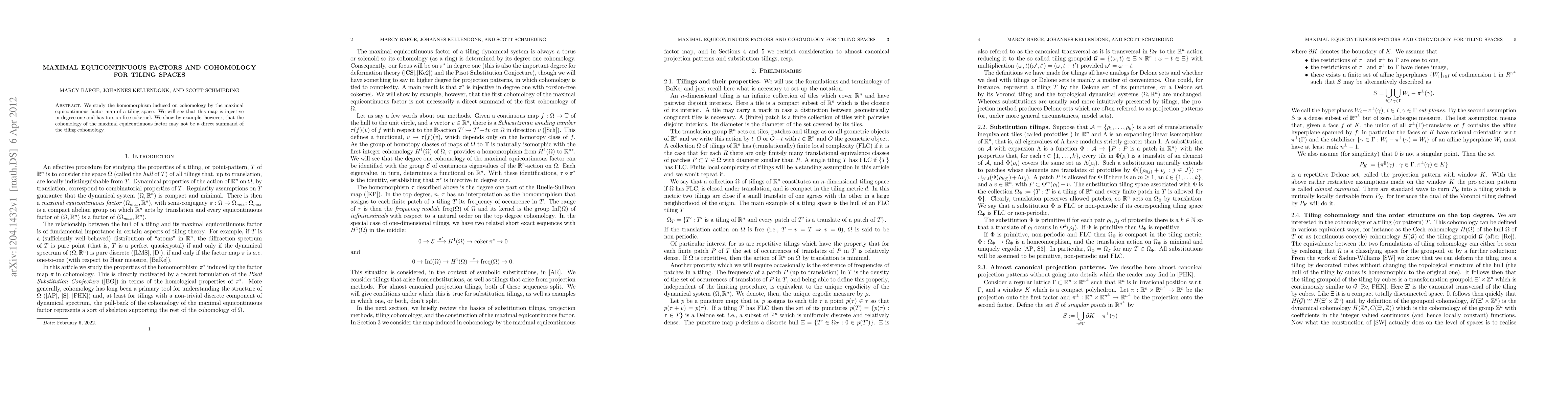 This paper investigates the cohomology induced by the maximal equicontinuous factor map in tiling spaces, demonstrating injectivity in degree one and a torsion-free cokernel, while noting that the cohomology of the maximal equicontinuous factor is not necessarily a direct summand of the tiling cohomology.