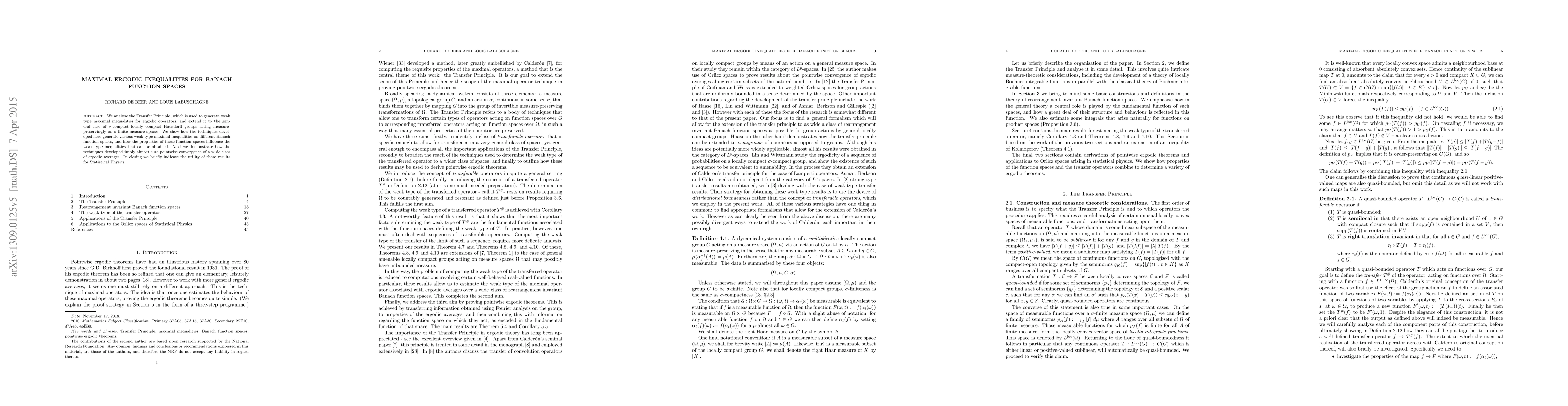 We analyse the Transfer Principle, which is used to generate weak type maximal inequalities for ergodic operators, and extend it to the general case of $\sigma$-compact locally compact Hausdorff groups acting measure-preservingly on $\sigma$-finite measure spaces. We show how the techniques developed here generate various weak type maximal inequalities on different Banach function spaces, and how the properties of these function spaces influence the weak type inequalities that can be obtained. Finally, we demonstrate how the techniques developed imply almost sure pointwise convergence of a wide class of ergodic averages.
