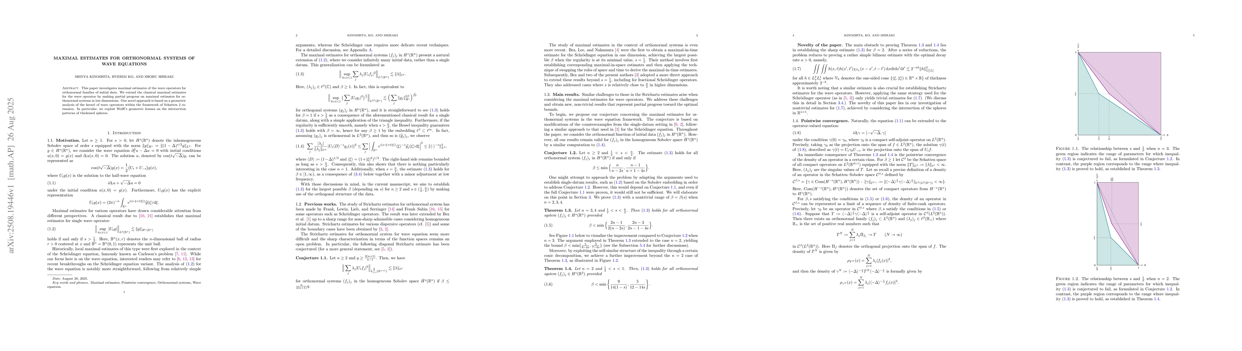 This paper investigates maximal estimates of the wave operators for orthonormal families of initial data. We extend the classical maximal estimates for the wave operator by making partial progress on maximal estimates for orthonormal systems in low dimensions. Our novel approach is based on a geometric analysis of the kernel of wave operators within the framework of Schatten $2$ estimates. In particular, we exploit Wolff's geometric lemma on the intersection patterns of thickened spheres.