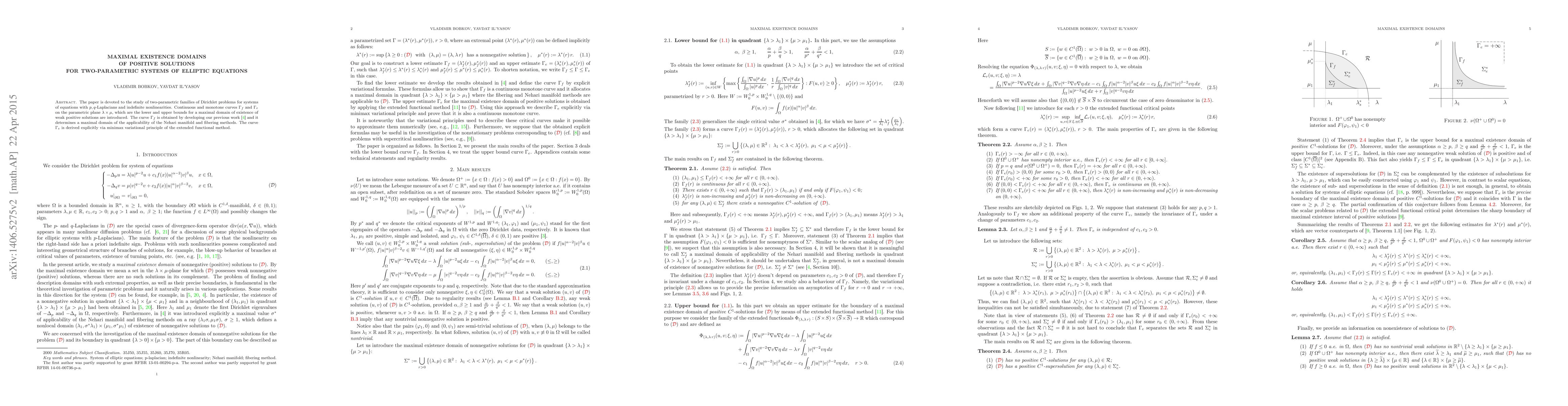 The paper introduces a method for determining the maximal existence domains of positive solutions for two-parametric systems of elliptic equations, combining Nehari manifold and fibering methods with a minimax variational principle.