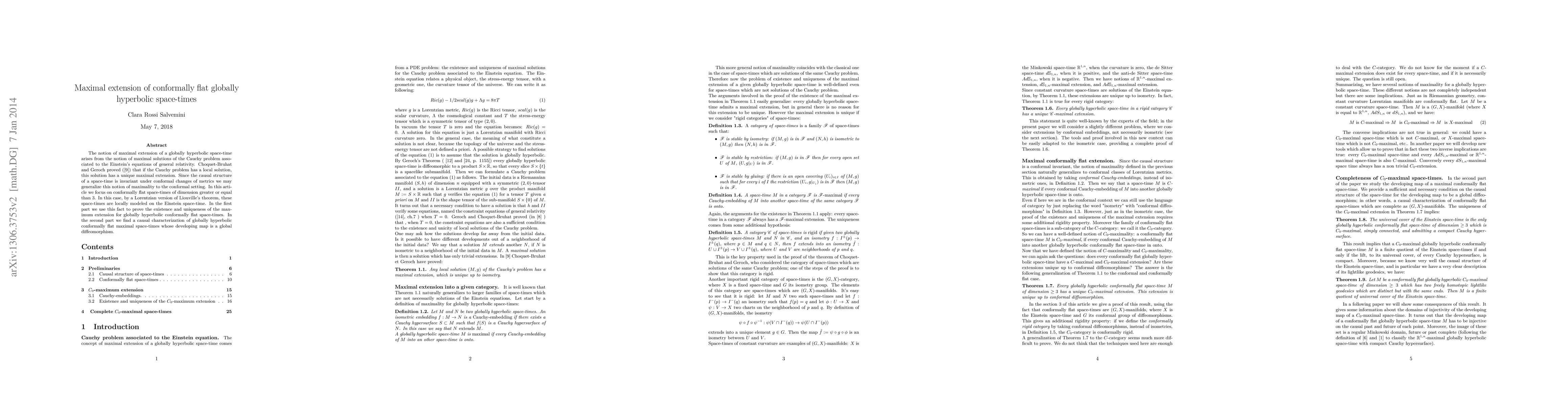 This paper explores the maximal extension of globally hyperbolic conformally flat space-times, proving their existence and uniqueness. It also characterizes these space-times causally when their developing map is a global diffeomorphism.