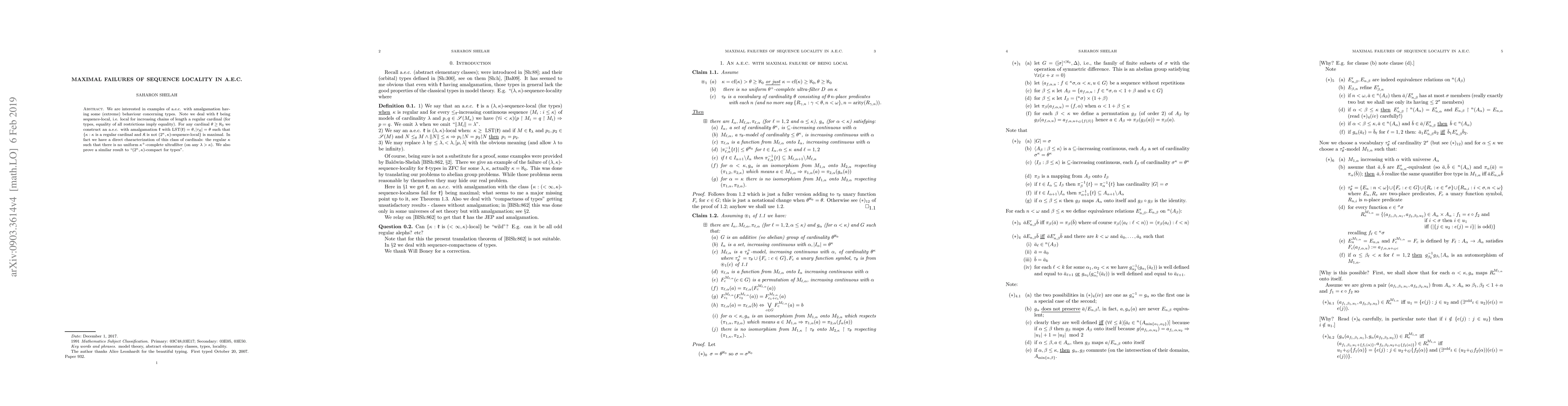 Researchers study sequence locality in a.e.c with amalgamation, finding that regular cardinals with no uniform ultrafilter lead to maximal failures of this property. They also characterize kappa values for which types are (2^kappa, kappa)-compact.