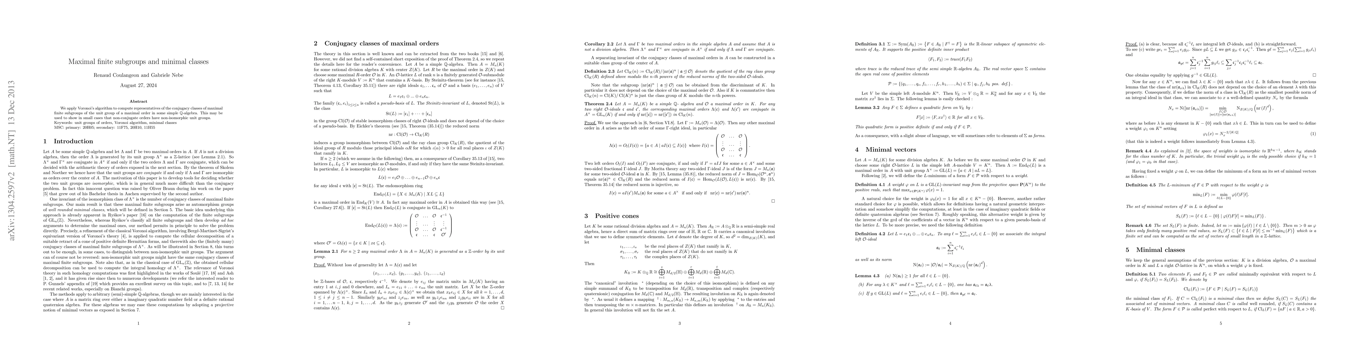 Researchers used Voronoi's algorithm to study maximal finite subgroups of unit groups in certain algebras, potentially shedding light on the uniqueness of orders with non-conjugate unit groups.