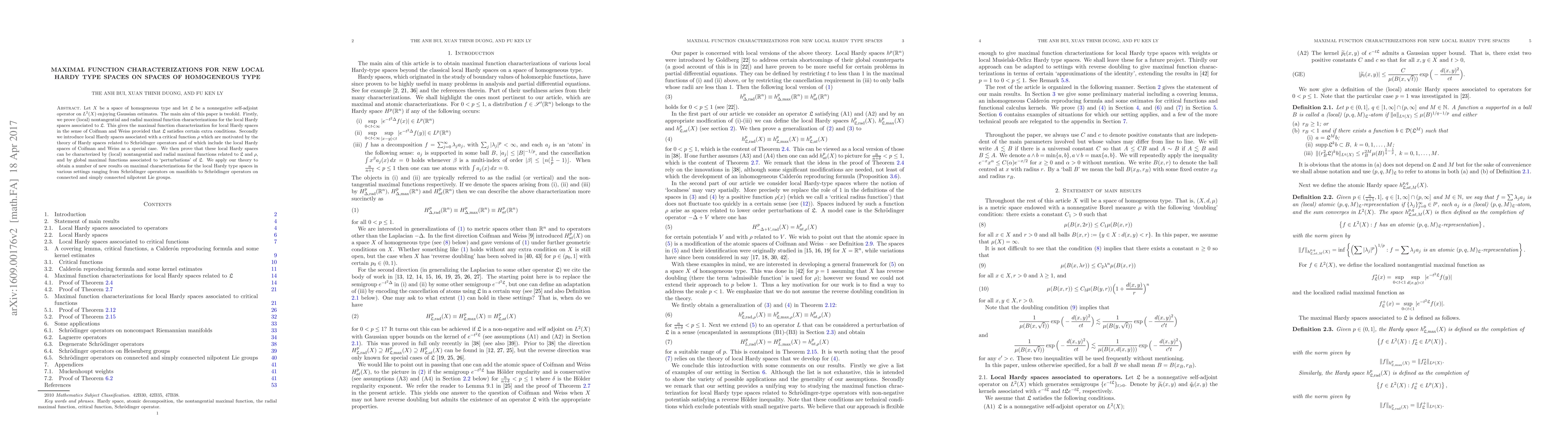 Let $X$ be a space of homogeneous type and let $\mathfrak{L}$ be a nonnegative self-adjoint operator on $L^2(X)$ enjoying Gaussian estimates. The main aim of this paper is twofold. Firstly, we prove the (local) nontangential and radial maximal function charaterization for the local Hardy spaces associated to $\mathfrak{L}$. This deduces the maximal function charaterization for local Hardy spaces in the sense of Coifman and Weiss provided that $\mathfrak{L}$ satisfies certain extra conditions. Secondly, we introduce the local Hardy space associated to the critical function $\rho$ which is motivated by the theory of Hardy spaces related to Schr\"odinger operators and includes the local Hardy spaces of Coifman and Weiss as a special case. Then we prove that these local Hardy spaces can be characterized by the the local nontangential and radial maximal function charaterization related to $\mathfrak{L}$ and $\rho$ and the global maximal function charaterizations associated to `perturbations' of $\mathfrak{L}$. As applications, we apply our theory to obtain a number of new results on maximal characterizations for the local Hardy type spaces in various settings ranging from Shr\"odinger operators on manifolds to Shr\"odinger operators on connected and simply connected nilpotent Lie groups.