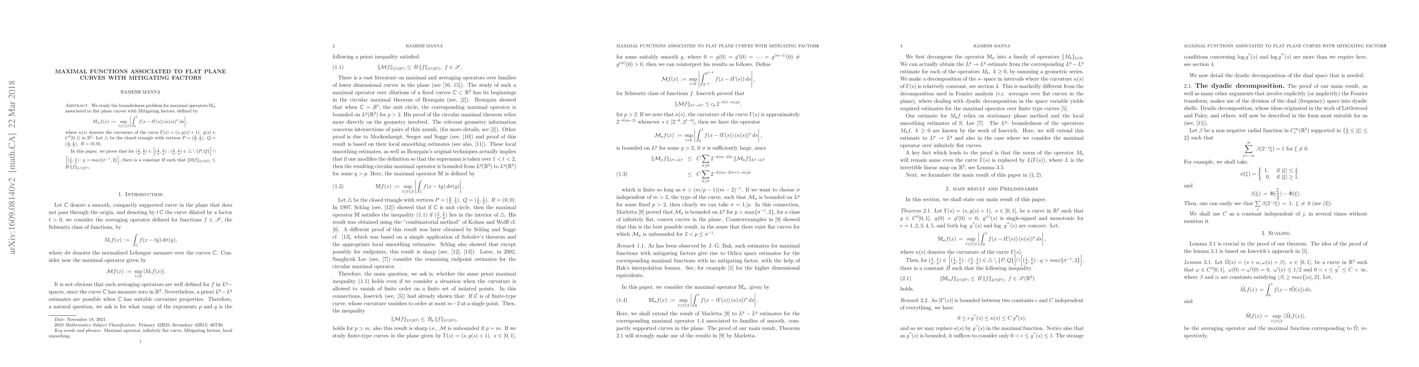 This paper investigates the boundedness of maximal operators associated with flat plane curves, proving a specific inequality for certain values of p and q; it has implications for understanding the behavior of these operators in L^p spaces.