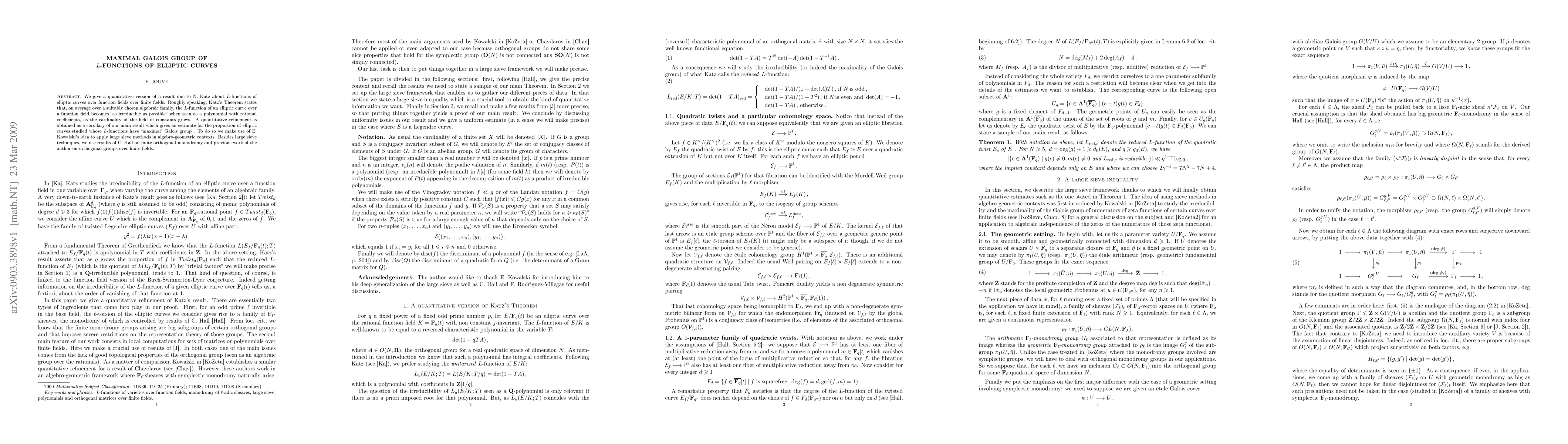 This paper refines Katz's theorem on L-functions of elliptic curves over function fields, providing a quantitative estimate of the proportion of curves whose L-functions have maximal Galois group. The authors use large sieve methods and results from other works to achieve this result.