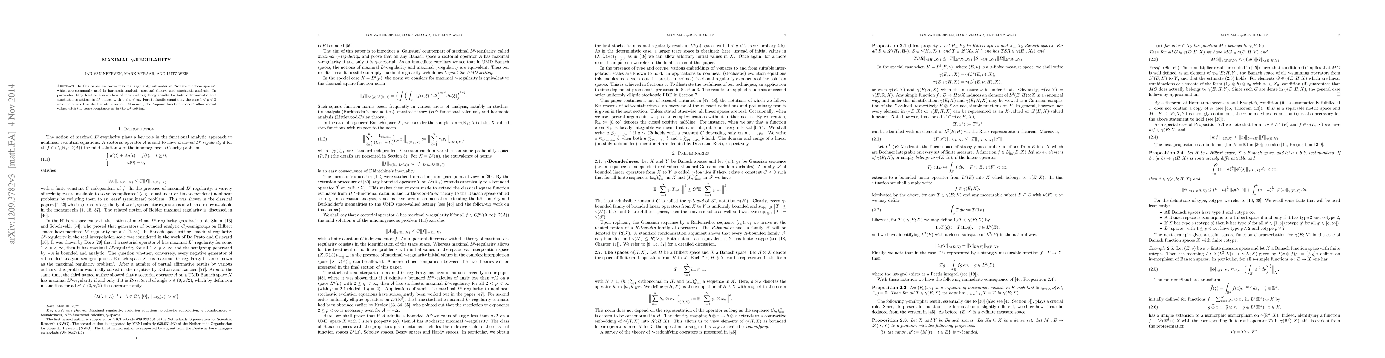 This paper proves maximal regularity estimates for both deterministic and stochastic equations in $L^p$-spaces with $1<p<ty$, using a new class of spaces called square function spaces, which cover the case $1<p<2$.