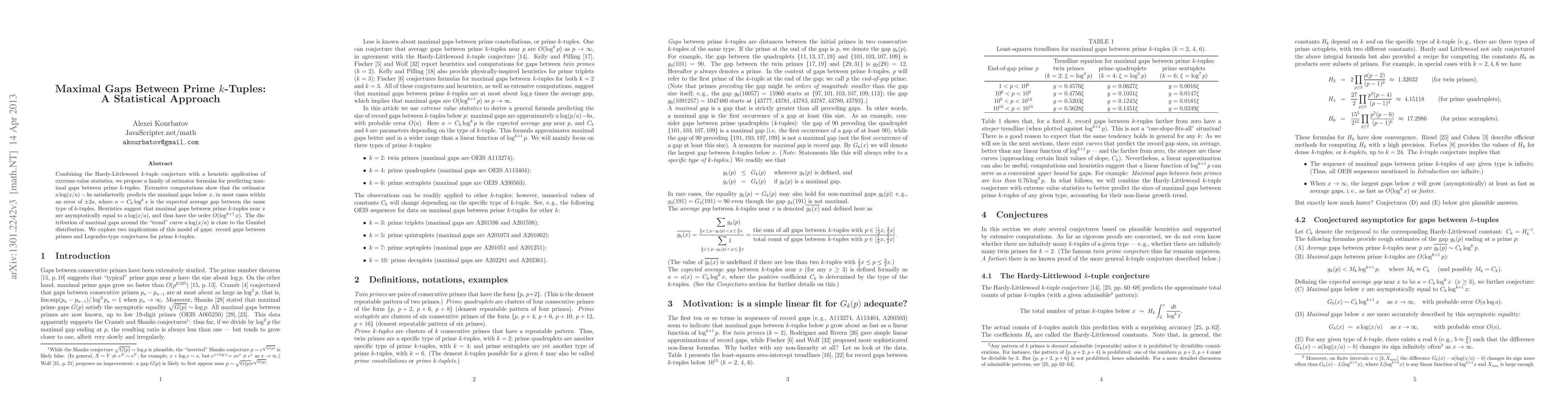 This paper combines the Hardy-Littlewood k-tuple conjecture with extreme-value statistics to develop estimator formulas predicting maximal gaps between prime k-tuples. The proposed model suggests that these gaps grow approximately as a*log(x/a), with an order of O(log^{k+1}x), and their distribution aligns closely with the Gumbel distribution.