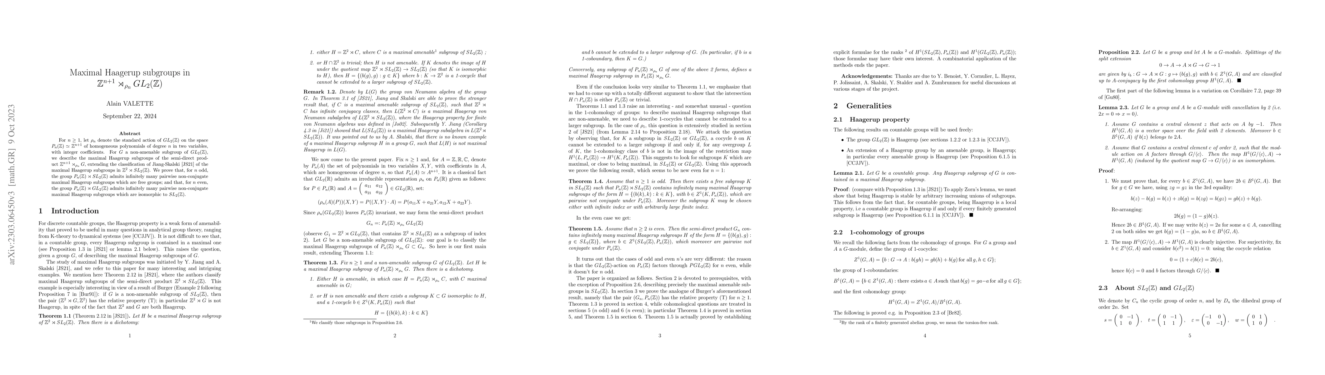 For $n\geq 1$, let $\rho_n$ denote the standard action of $GL_2(\Z)$ on the space $P_n(\Z)\simeq\Z^{n+1}$ of homogeneous polynomials of degree $n$ in two variables, with integer coefficients. For $G$ a non-amenable subgroup of $GL_2(\Z)$, we describe the maximal Haagerup subgroups of the semi-direct product $\Z^{n+1}\rtimes_{\rho_n} G$, extending the classification of Jiang-Skalski \cite{JiSk} of the maximal Haagerup subgroups in $\Z^2\rtimes SL_2(\Z)$. We prove that, for $n$ odd, the group $P_n(\Z)\rtimes SL_2(\Z)$ admits infinitely many pairwise non-conjugate maximal Haagerup subgroups which are free groups; and that, for $n$ even, the group $P_n(\Z)\rtimes GL_2(\Z)$ admits infinitely many pairwise non-conjugate maximal Haagerup subgroups which are isomorphic to $SL_2(\Z)$.