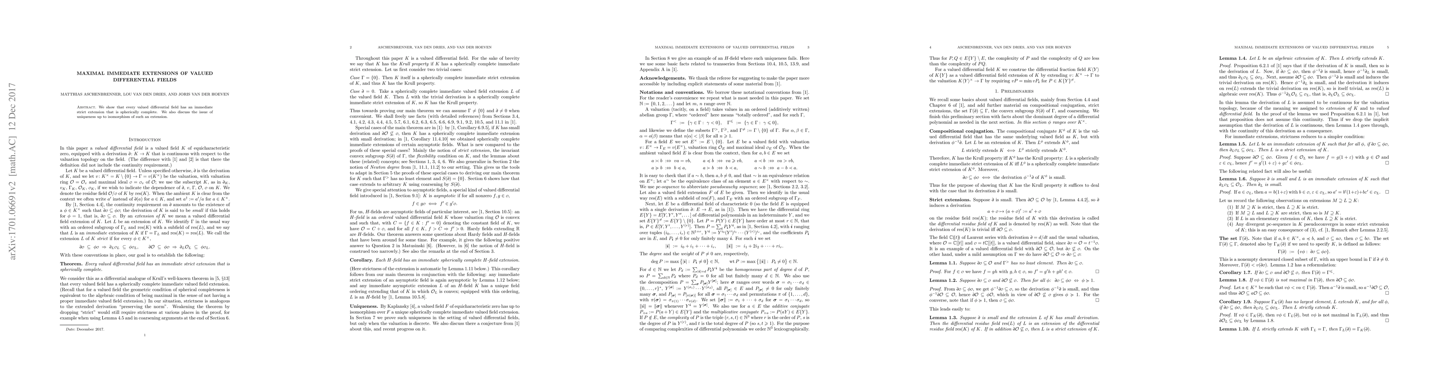 The paper employs a rigorous proof technique, combining elements from model theory and differential algebra, to establish the existence of maximal immediate extensions for valued differential fields.