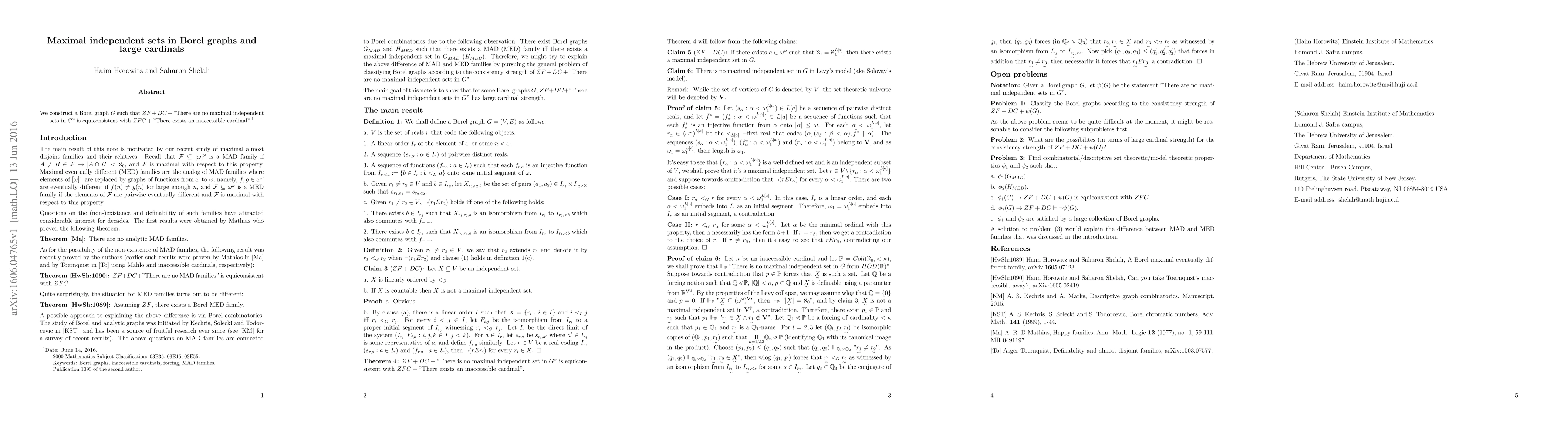 A Borel graph is constructed where maximal independent sets exist if and only if there exists an inaccessible cardinal, showing a connection between set theory's large cardinals and graph theory's maximal independent sets.