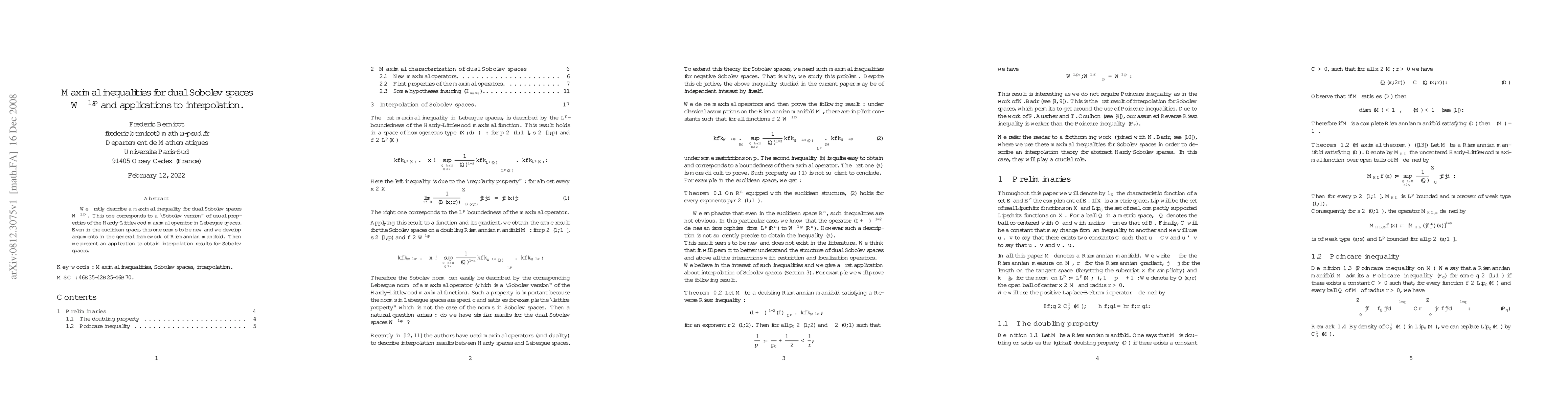 Summary: This paper establishes a novel maximal inequality for dual Sobolev spaces $W^{-1,p}$, extending properties of the Hardy-Littlewood maximal operator to this context, and applies it to derive interpolation results for Sobolev spaces on both Euclidean and Riemannian manifolds.