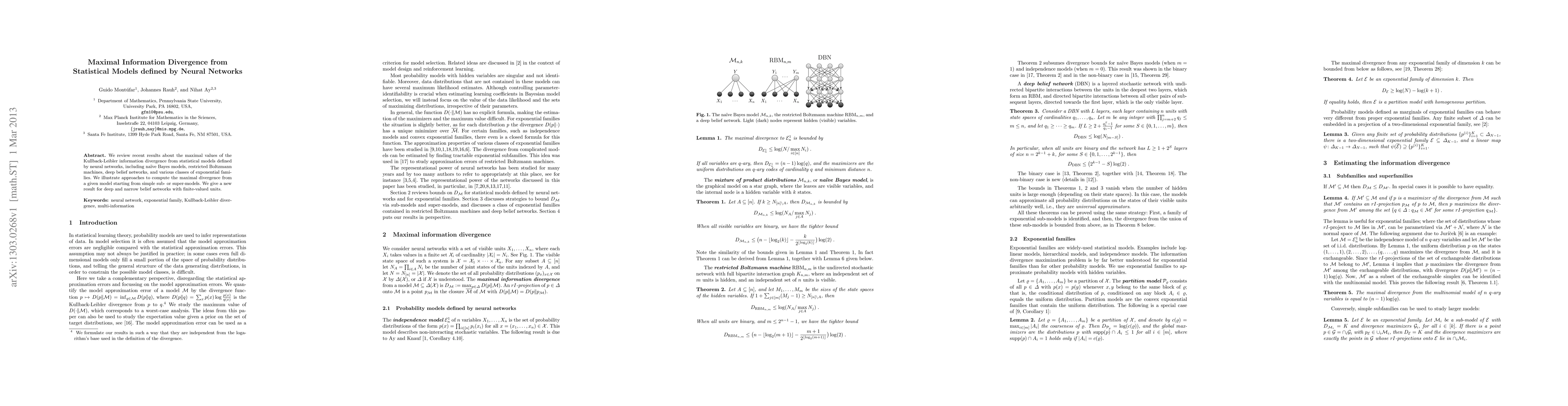 The paper presents new theoretical results and bounds for maximal information divergence from various neural network-defined statistical models, including naive Bayes models, restricted Boltzmann machines, and deep belief networks.
