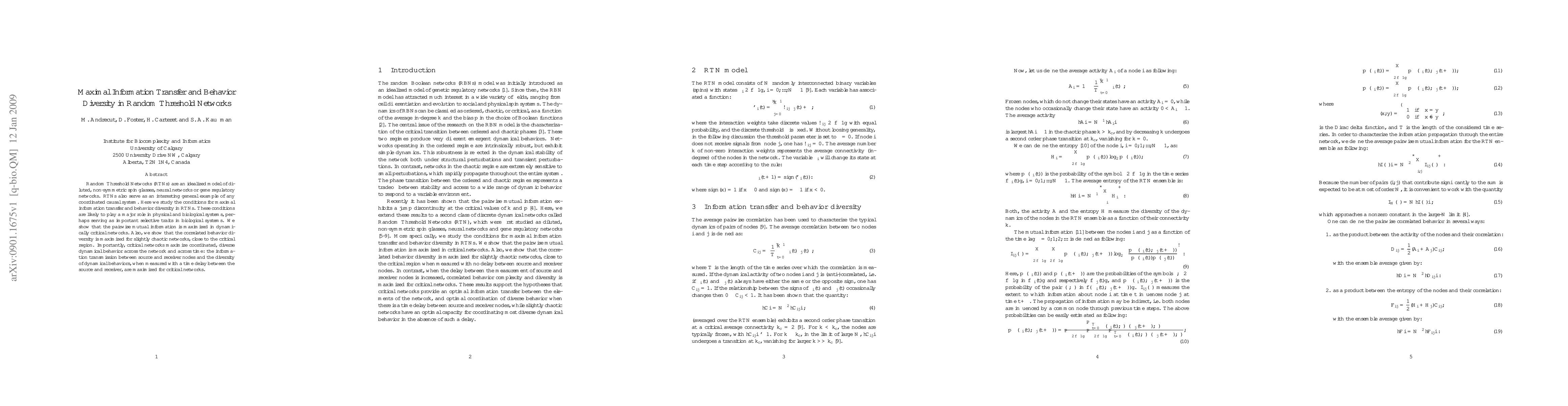 This paper investigates the optimal conditions for maximal information transfer and behavior diversity in Random Threshold Networks, finding that dynamically critical networks maximize mutual information, while slightly chaotic networks near the critical region maximize correlated behavior diversity. These findings suggest critical networks are pivotal for coordinated, diverse dynamical behavior in both physical and biological systems.