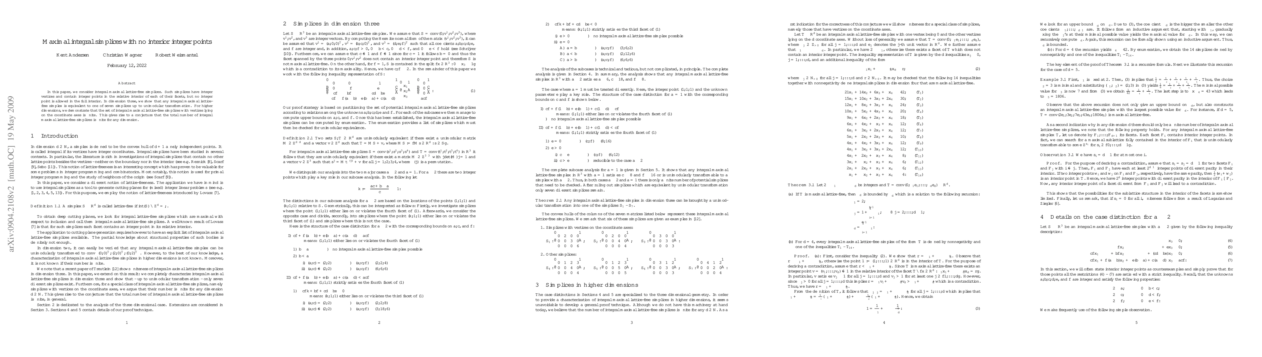 This paper investigates integral maximal lattice-free simplices, which have integer vertices and no interior integer points, showing that in three dimensions, they are equivalent to seven specific simplices. It also proves the finiteness of such simplices in higher dimensions when vertices lie on the coordinate axes, leading to a conjecture that this holds true for any dimension.