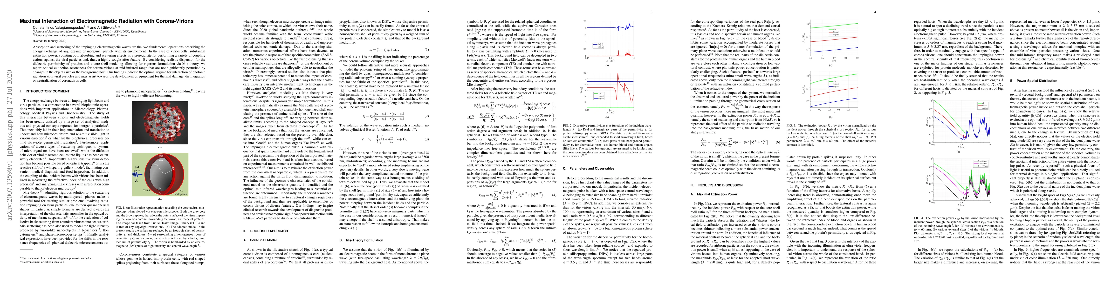 Absorption and scattering of the impinging electromagnetic waves are the two fundamental operations describing the energy exchange of any, organic or inorganic, particle with its environment. In the case of virion cells, substantial extinction power, counting both absorbing and scattering effects, is a prerequisite for performing a variety of coupling actions against the viral particles and, thus, a highly sought-after feature. By considering realistic dispersion for the dielectric permittivity of proteins and a core-shell modeling allowing for rigorous formulation via Mie theory, we report optical extinction resonances for corona-virions at mid-infrared range that are not significantly perturbed by changes in the objects size or the background host. Our findings indicate the optimal regime for interaction of photonic radiation with viral particles and may assist towards the development of equipment for thermal damage, disintegration or neutralization of coronavirus cells.