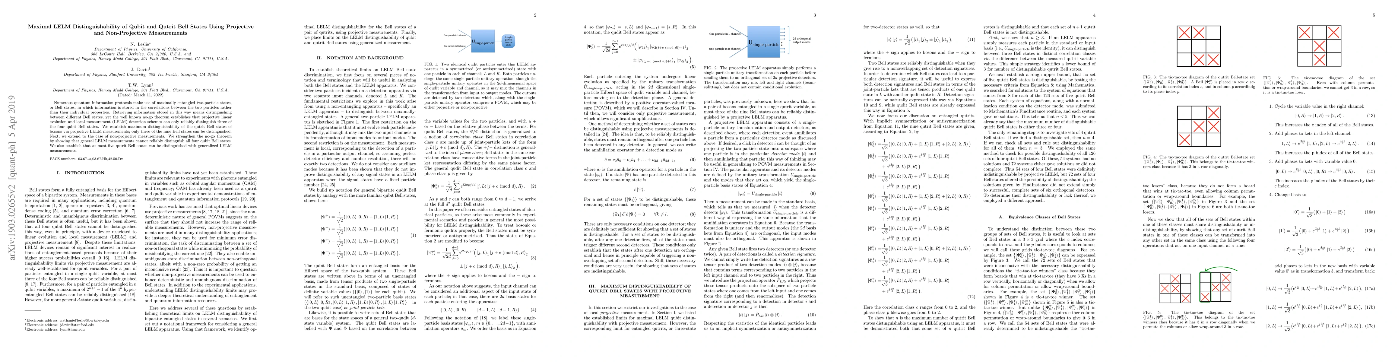 This paper investigates the maximal distinguishability of Bell states in qubits and qutrits using projective and non-projective local evolution and local measurement (LELM) schemes. It concludes that projective LELM can distinguish three qubit Bell states and three qutrit Bell states, while non-projective LELM can distinguish up to five qutrit Bell states, reinforcing the limitations of projective LELM.