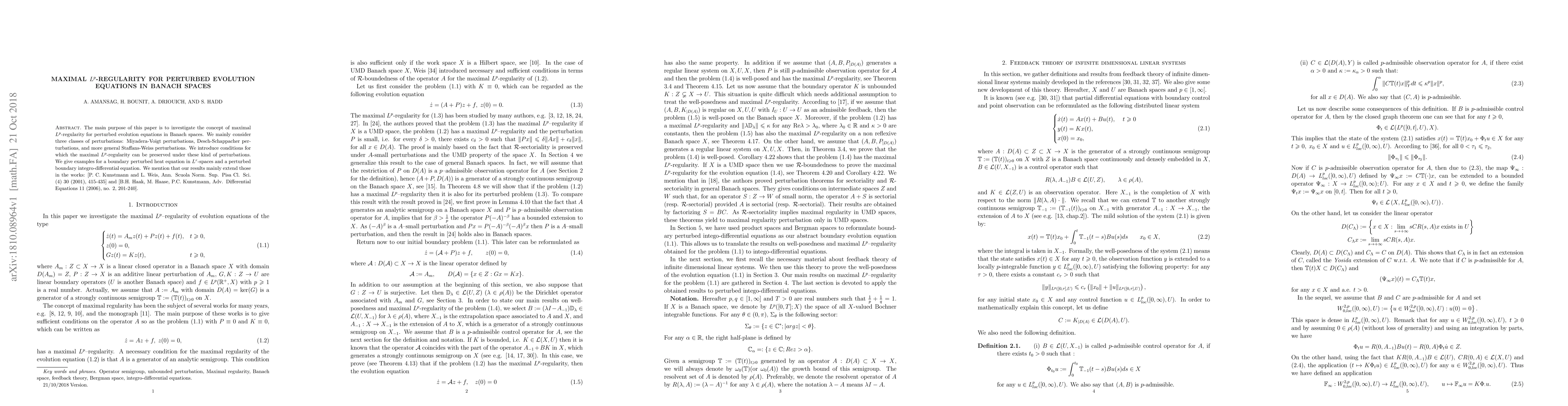 This paper explores maximal $L^p$-regularity for perturbed evolution equations in Banach spaces, focusing on Miyadera-Voigt, Desch-Schappacher, and Staffans-Weiss perturbations. It establishes conditions for preserving maximal $L^p$-regularity under these perturbations and extends prior results from Kunstmann and Weis, and Haak, Haase, and Kunstmann.