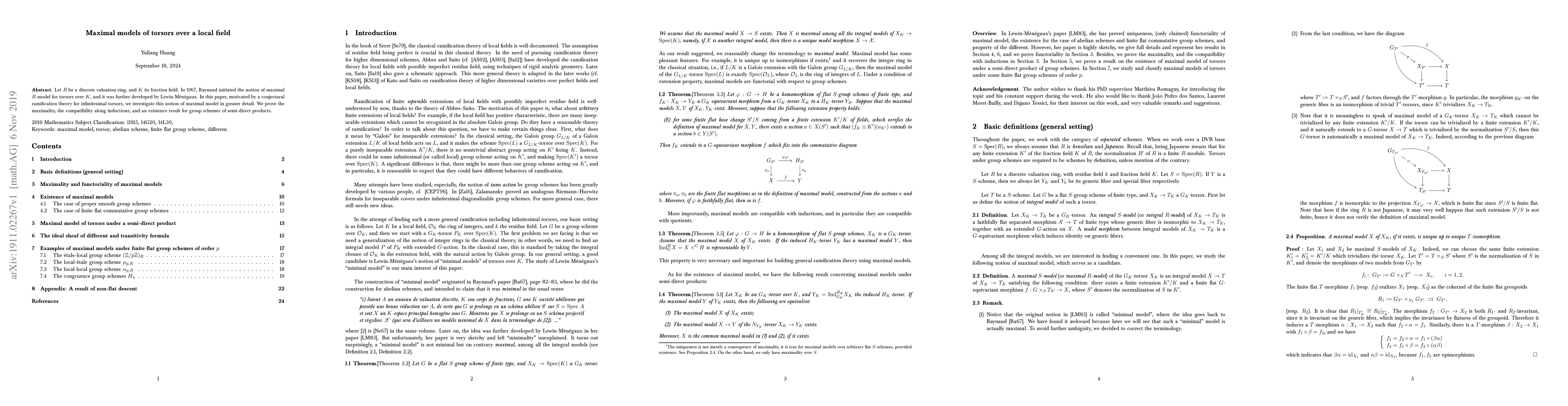 Researchers investigate maximal models of torsors over a local field, proving maximality, compatibility, and existence for semi-direct products, motivated by a conjectural ramification theory for infinitesimal torsors.