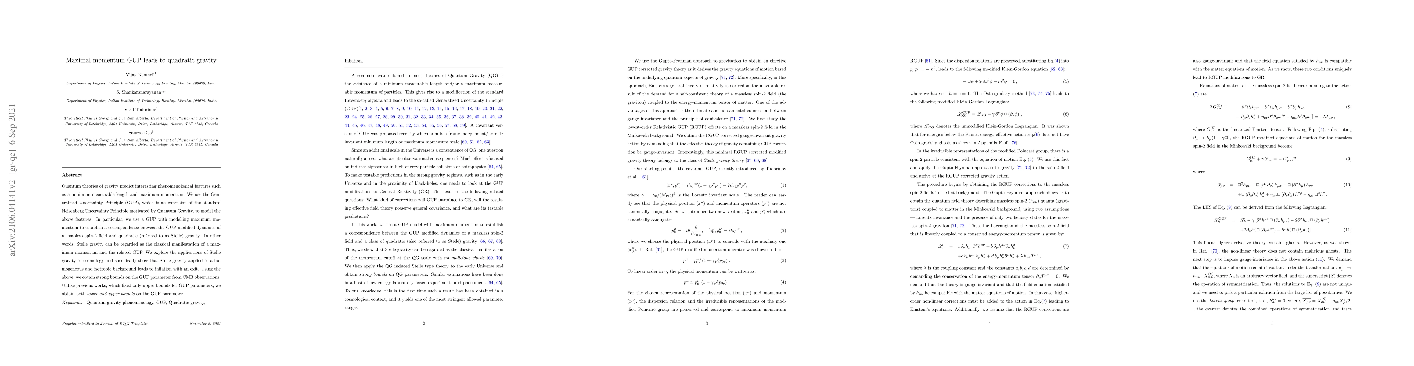 This paper explores how the Generalized Uncertainty Principle (GUP) with maximal momentum leads to quadratic gravity, specifically Stelle gravity, and applies it to cosmology, showing it can induce inflation. The study derives both lower and upper bounds for the GUP parameter from CMB observations, providing stronger constraints than previous works.