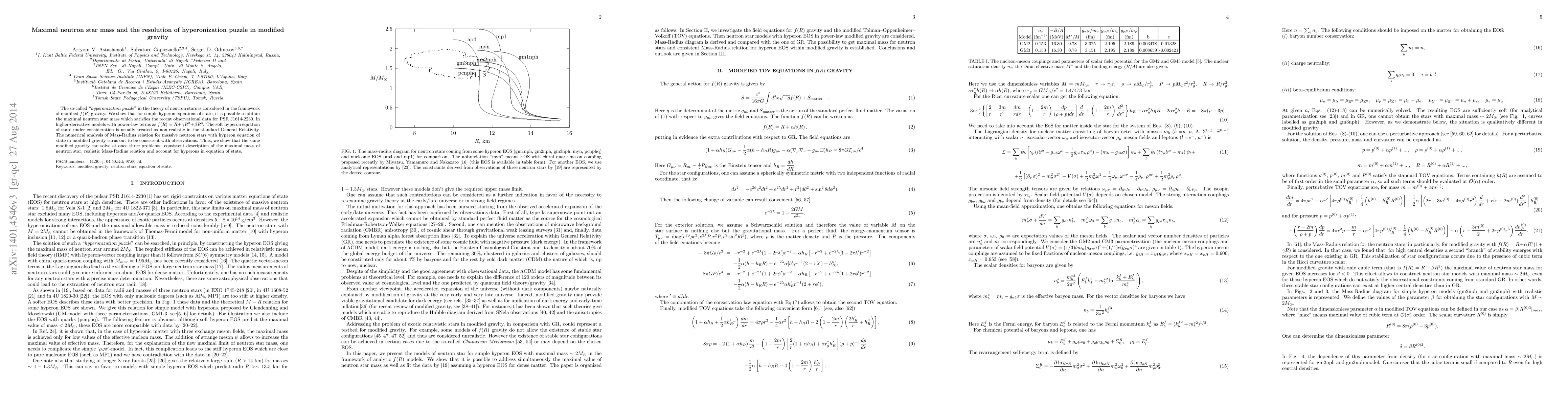 This paper explores the hyperon puzzle in neutron stars using modified $f(R)$ gravity, demonstrating that it can achieve the maximal neutron star mass observed in PSR J1614-2230 while incorporating hyperons into the equation of state, resolving three key issues simultaneously.
