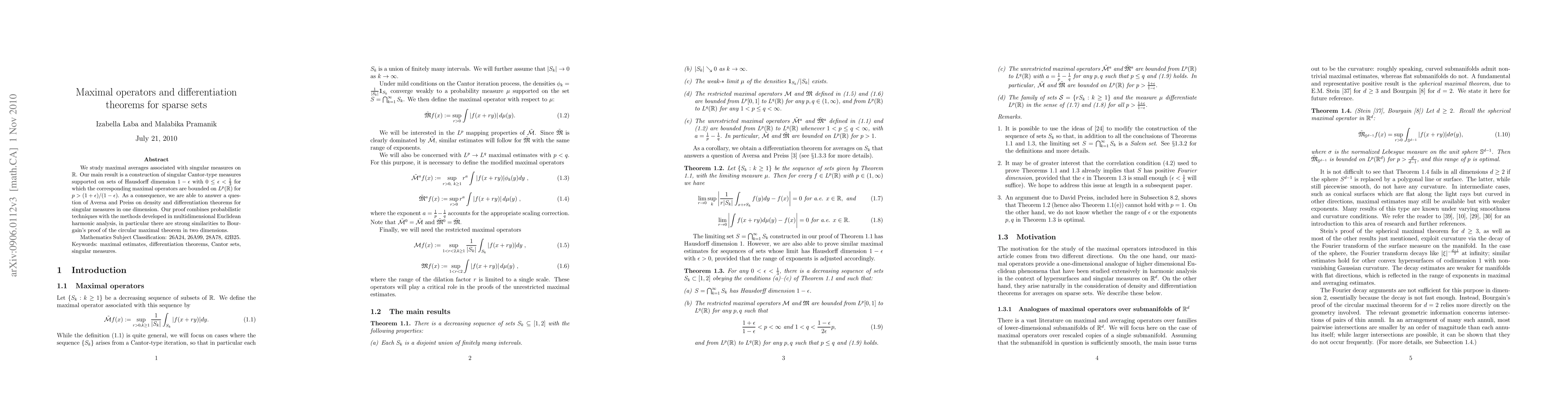This paper constructs singular Cantor-type measures on sparse sets with maximal operators bounded on $L^p(\mathbb{R})$ for $p > (1+\epsilon)/(1-\epsilon)$. It answers a question on density and differentiation theorems in one dimension, combining probabilistic techniques with multidimensional harmonic analysis methods. Updates include improved bounds and proofs that extend the differentiation theorems to $p > 1$.