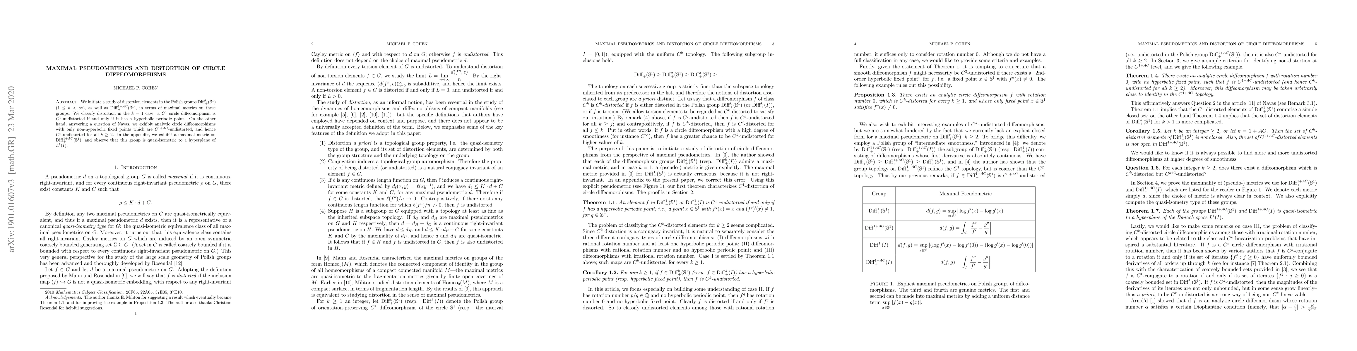 We initiate a study of distortion elements in the Polish groups $\mbox{Diff}_+^k(\mathbb{S}^1)$ ($1\leq k<\infty$), as well as $\mbox{Diff}_+^{1+AC}(\mathbb{S}^1)$, in terms of maximal metrics on these groups. We classify distortion in the $k=1$ case: a $C^1$ circle diffeomorphism is $C^1$-undistorted if and only if it has a hyperbolic periodic point. On the other hand, answering a question of Navas, we exhibit analytic circle diffeomorphisms with only non-hyperbolic fixed points which are $C^{1+AC}$-undistorted, and hence $C^k$-undistorted for all $k\geq 2$. In the appendix, we exhibit a maximal metric on $\mbox{Diff}_+^{1+AC}(\mathbb{S}^1)$, and observe that this group is quasi-isometric to a hyperplane of $L^1(I)$.