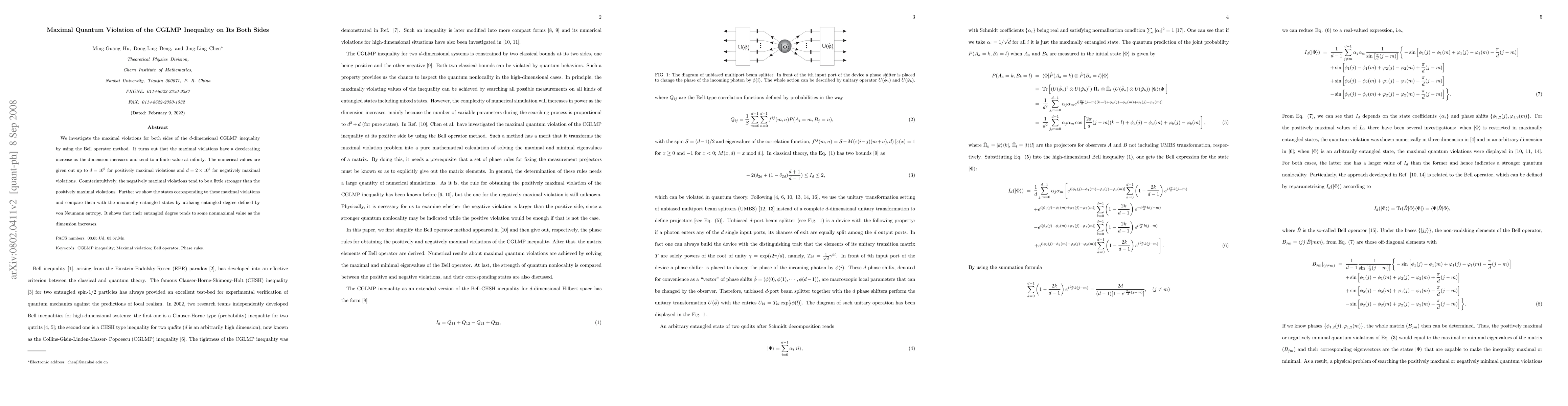 We investigate the maximal violations for both sides of the $d$-dimensional CGLMP inequality by using the Bell operator method. It turns out that the maximal violations have a decelerating increase as the dimension increases and tend to a finite value at infinity. The numerical values are given out up to $d=10^6$ for positively maximal violations and $d=2\times 10^5$ for negatively maximal violations. Counterintuitively, the negatively maximal violations tend to be a little stronger than the positively maximal violations. Further we show the states corresponding to these maximal violations and compare them with the maximally entangled states by utilizing entangled degree defined by von Neumann entropy. It shows that their entangled degree tends to some nonmaximal value as the dimension increases.