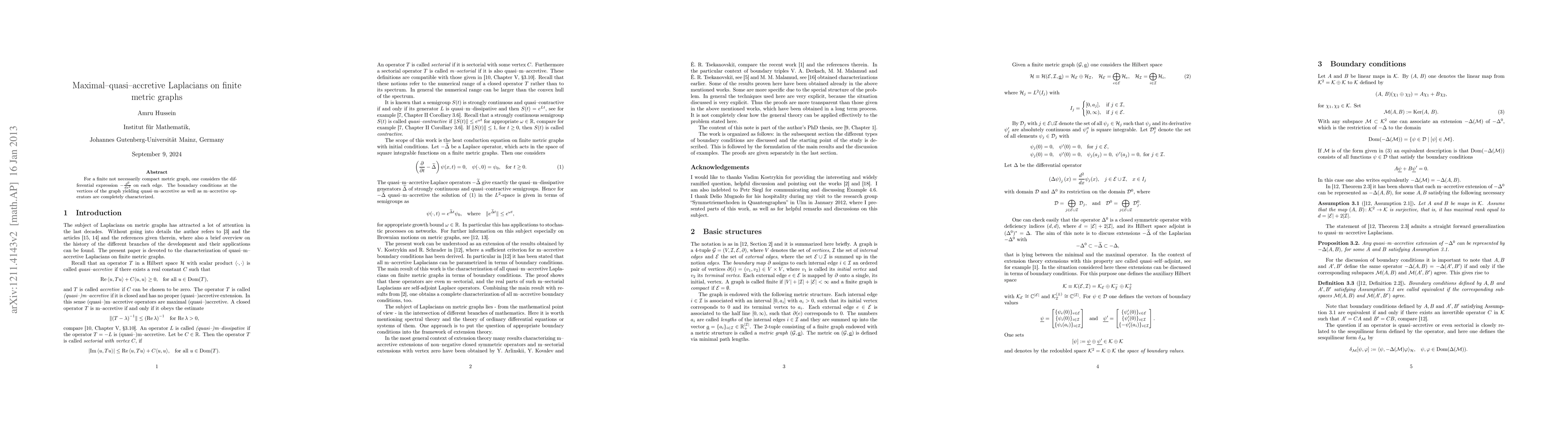 For a finite not necessarily compact metric graph, one considers the differential expression $-\frac{d^2}{d x^2}$ on each edge. The boundary conditions at the vertices of the graph yielding quasi-m-accretive as well as m-accretive operators are completely characterized.