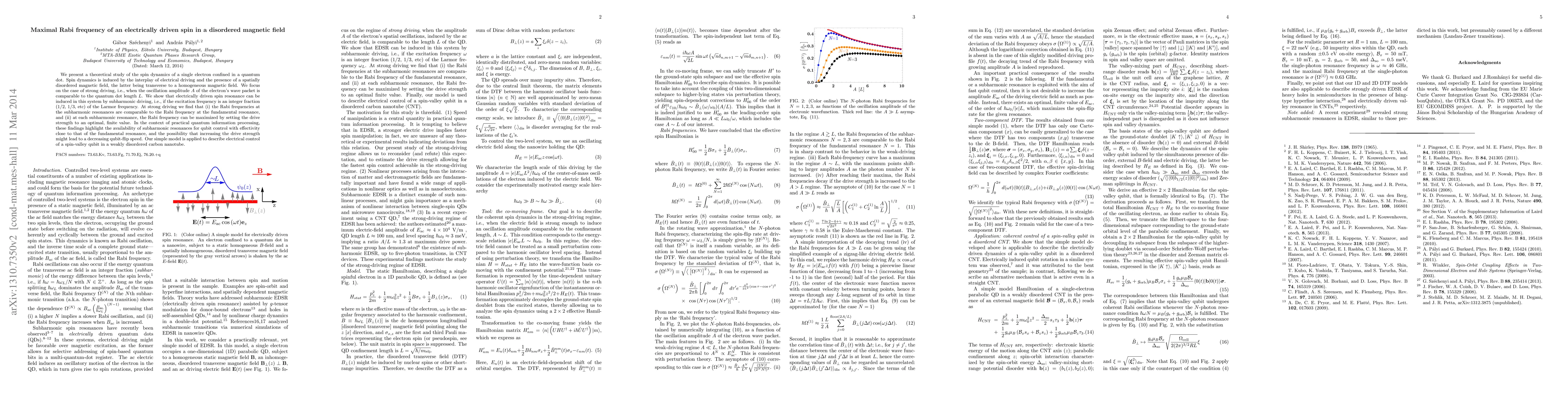 This paper investigates spin dynamics in a quantum dot under electrical driving and a disordered magnetic field, demonstrating that subharmonic resonances can induce electrically driven spin resonance. The study finds that the maximal Rabi frequency at these resonances can be optimized by adjusting the drive strength.