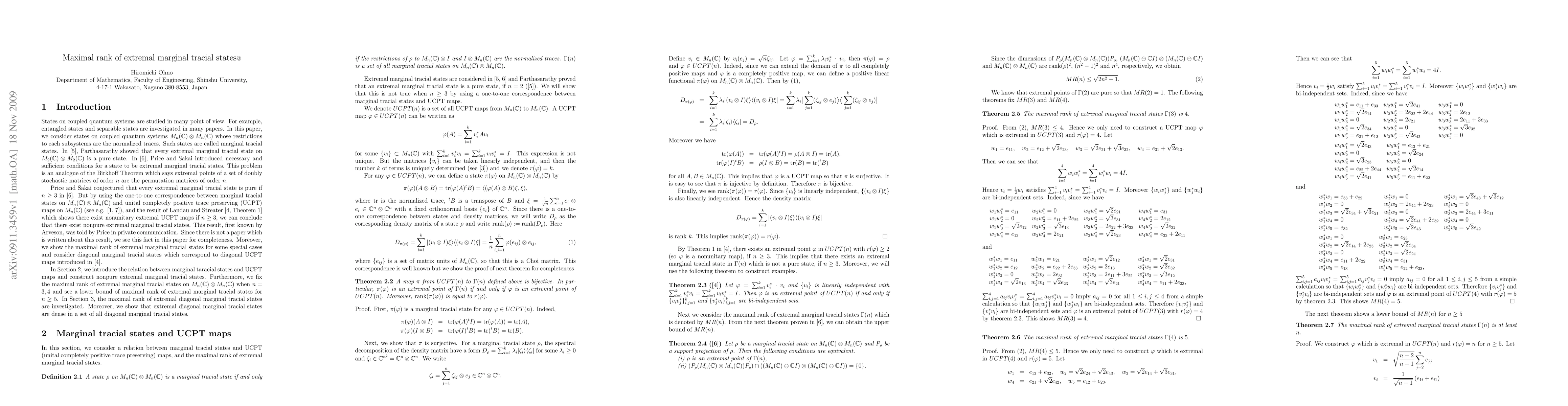 This paper explores extremal marginal tracial states on coupled quantum systems, focusing on their maximal rank and the properties of diagonal marginal tracial states. The study aims to understand the structural characteristics and rank-related properties of these states.