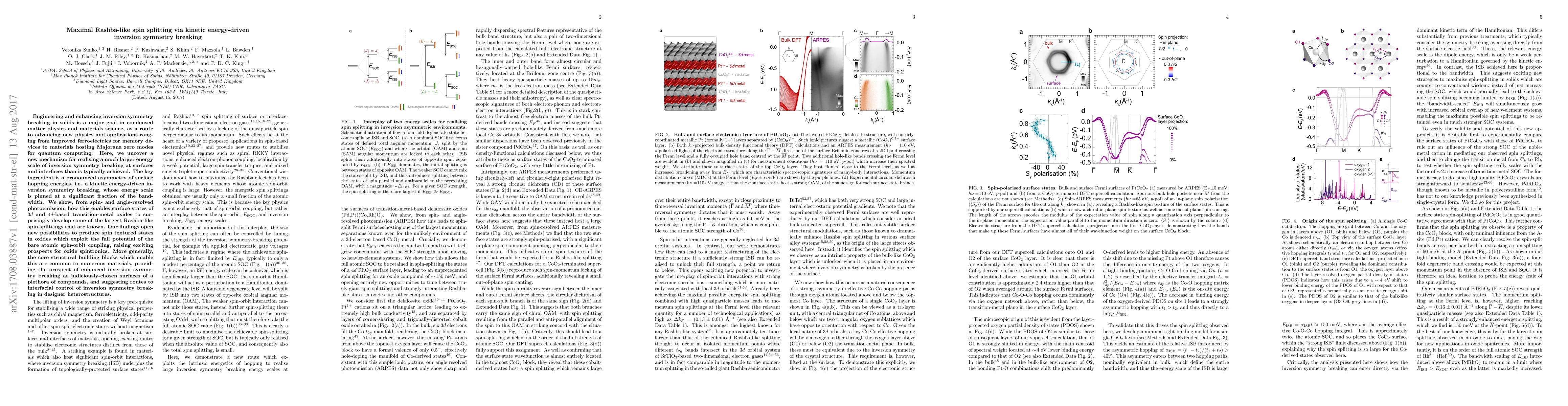 This paper demonstrates a significant kinetic energy-driven inversion symmetry breaking mechanism at surfaces and interfaces of transition-metal oxides, leading to unprecedentedly large Rashba-like spin splittings. The findings suggest promising avenues for advanced oxide spintronics and the control of inversion symmetry in heterostructures.
