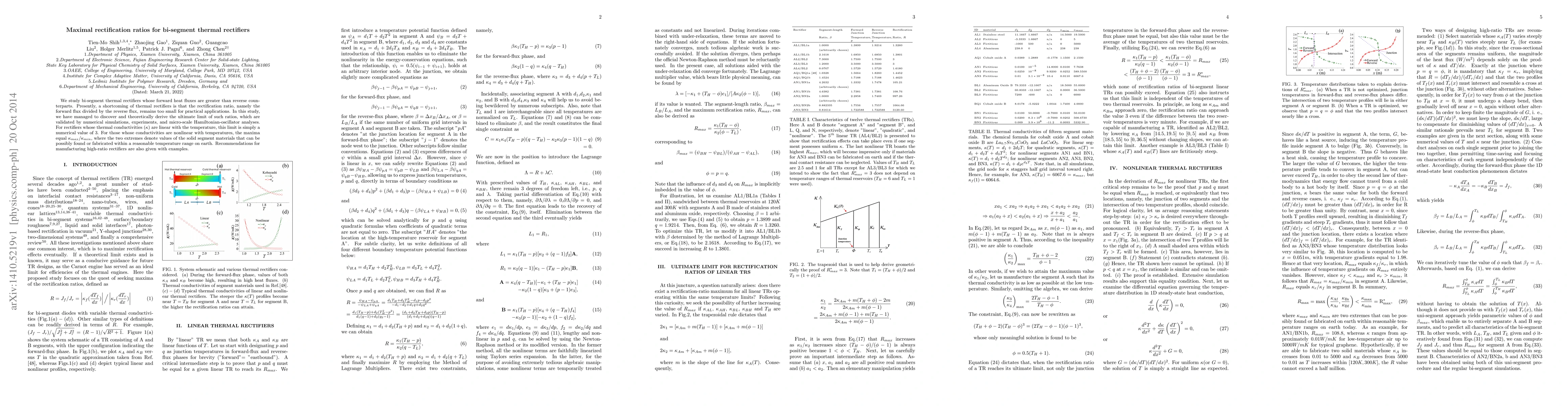 This paper investigates the maximal rectification ratios for bi-segment thermal rectifiers, discovering theoretical limits validated by simulations and experiments. The maximum ratio is 3 for linear thermal conductivities, and $\kappa_{max}/\kappa_{min}$ for nonlinear conductivities, with recommendations for high-ratio rectifier manufacturing.