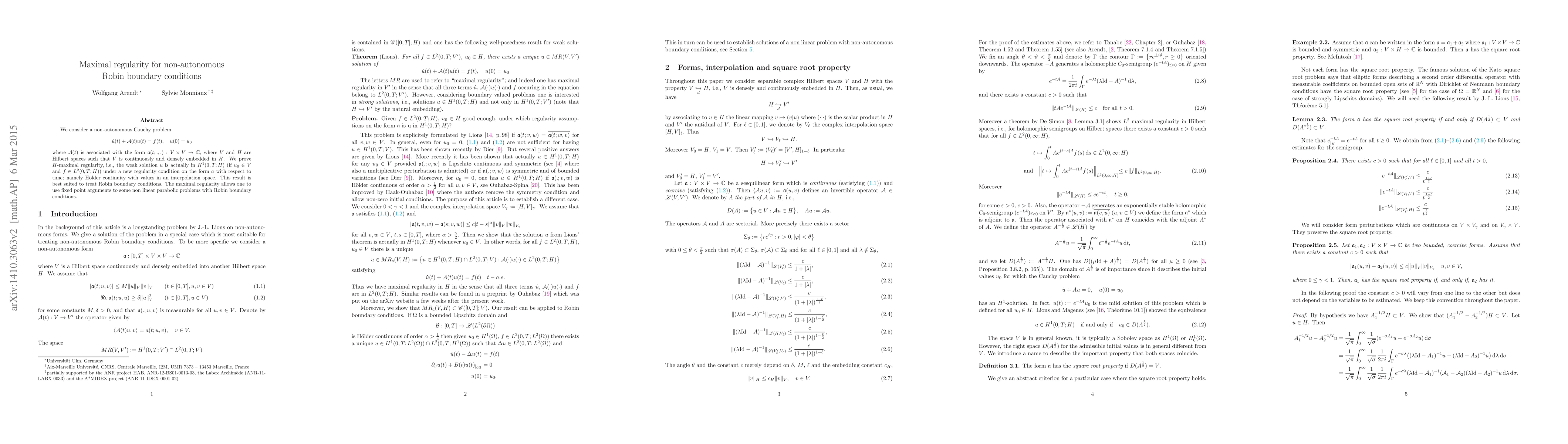 We consider a non-autonomous Cauchy problem involving linear operators associated with time-dependent forms $a(t;.,.):V\times V\to {\mathbb{C}}$ where $V$ and $H$ are Hilbert spaces such that $V$ is continuously embedded in $H$. We prove $H$-maximal regularity under a new regularity condition on the form $a$ with respect to time; namely H{\"o}lder continuity with values in an interpolation space. This result is best suited to treat Robin boundary conditions. The maximal regularity allows one to use fixed point arguments to some non linear parabolic problems with Robin boundary conditions.