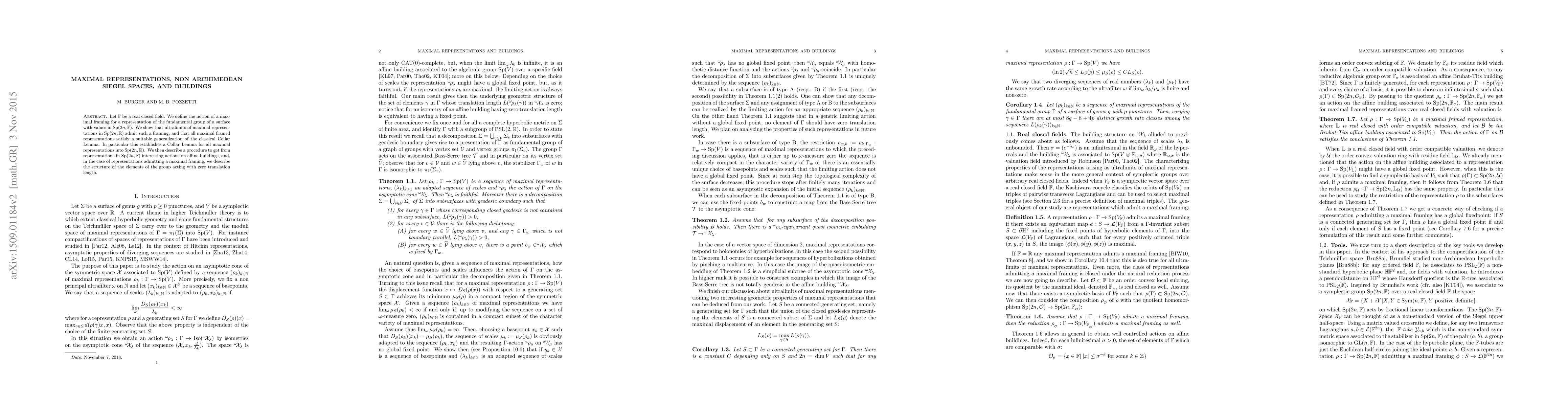 Let $\mathbb F$ be a real closed field. We define the notion of a maximal framing for a representation of the fundamental group of a surface with values in ${\rm Sp}(2n,\mathbb F)$. We show that ultralimits of maximal representations in ${\rm Sp}(2n,\mathbb R)$ admit such a framing, and that all maximal framed representations satisfy a suitable generalisation of the classical Collar Lemma. In particular this establishes a Collar Lemma for all maximal representations into ${\rm Sp}(2n,\mathbb R)$. We then describe a procedure to get from representations in ${\rm Sp}(2n,\mathbb F)$ interesting actions on affine buildings, and, in the case of representations admitting a maximal framing, we describe the structure of the elements of the group acting with zero translation length.