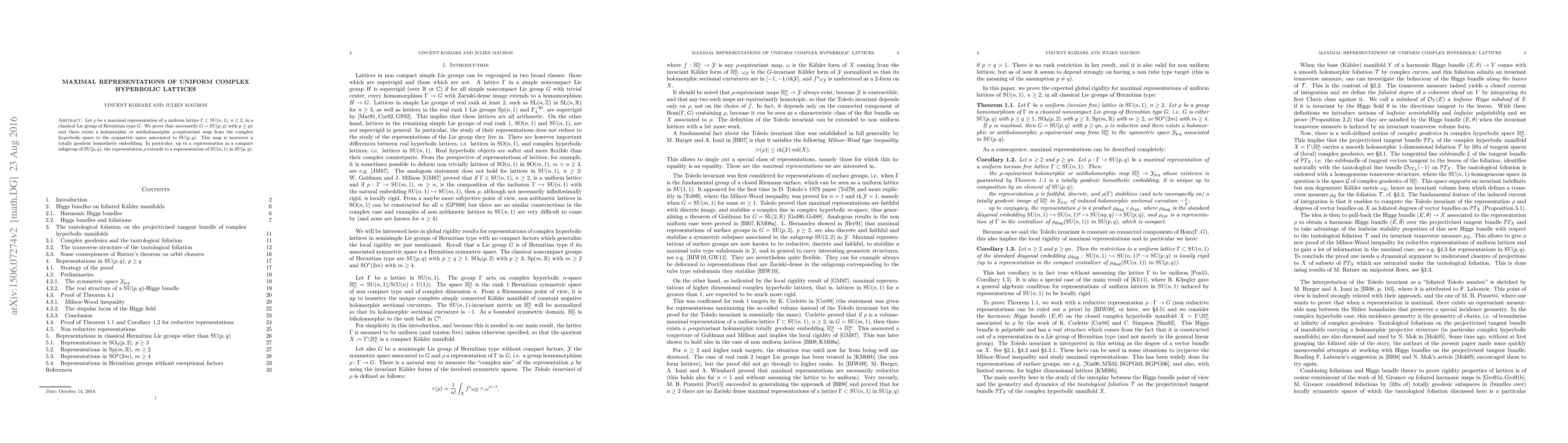Researchers prove that maximal representations of uniform complex hyperbolic lattices extend to representations in SU(p,q), a specific type of classical Lie group, with certain conditions met.
