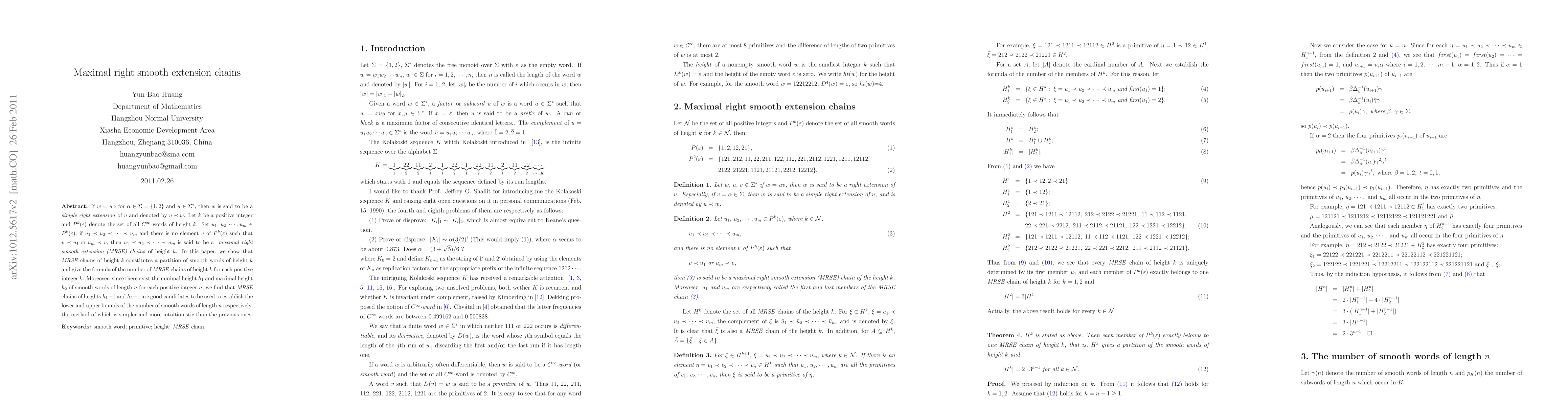 This paper introduces maximal right smooth extension chains, a new partitioning of smooth words, and derives a formula for the number of such chains, offering a simpler method to estimate the number of smooth words.