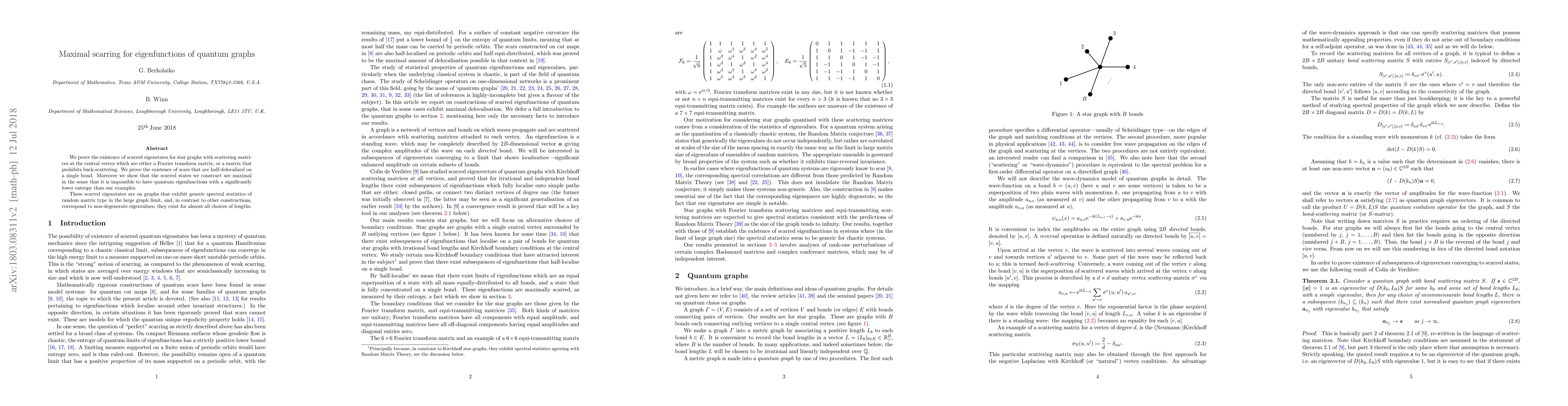 This paper proves the existence of maximal scarred eigenstates on star quantum graphs with specific scattering matrices, showing half-delocalised scars on a single bond. These eigenstates exhibit the lowest possible entropy among scarred states and correspond to non-degenerate eigenvalues with generic random matrix spectral statistics.