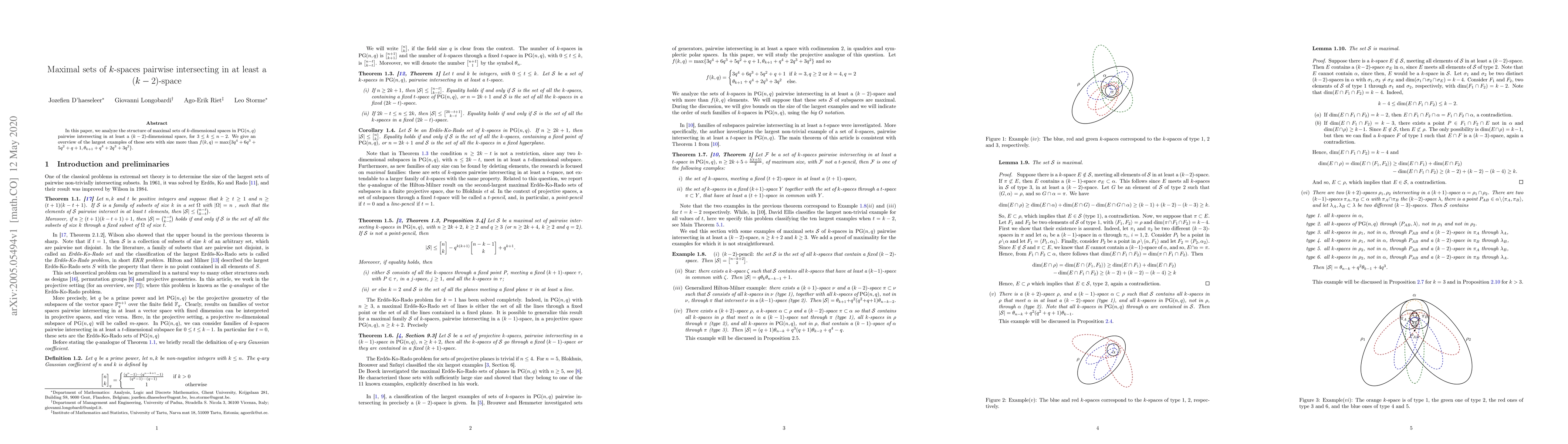 This research paper analyzes maximal sets of k-dimensional spaces in a projective plane intersecting in at least a (k-2)-dimensional space, with size exceeding a specific function of q for 3 ≤ k ≤ n-2.