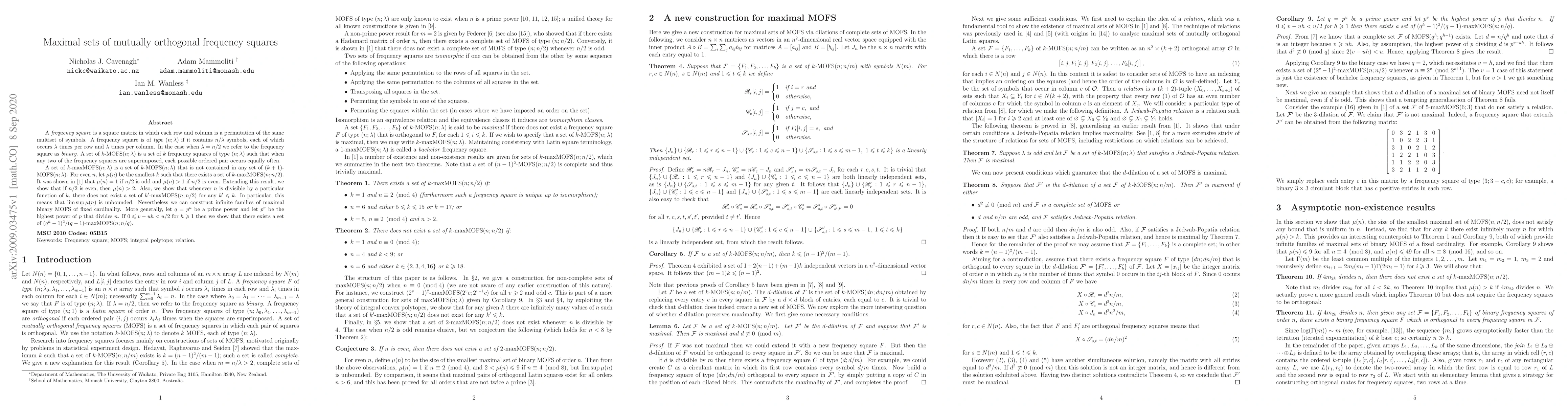 A frequency square is a square matrix in which each row and column is a permutation of the same multiset of symbols. A frequency square is of type $(n;\lambda)$ if it contains $n/\lambda$ symbols, each of which occurs $\lambda$ times per row and $\lambda$ times per column. In the case when $\lambda=n/2$ we refer to the frequency square as binary. A set of $k$-MOFS$(n;\lambda)$ is a set of $k$ frequency squares of type $(n;\lambda)$ such that when any two of the frequency squares are superimposed, each possible ordered pair occurs equally often. A set of $k$-maxMOFS$(n;\lambda)$ is a set of $k$-MOFS$(n;\lambda)$ that is not contained in any set of $(k+1)$-MOFS$(n;\lambda)$. For even $n$, let $\mu(n)$ be the smallest $k$ such that there exists a set of $k$-maxMOFS$(n;n/2)$. It was shown in [Electron. J. Combin. 27(3) (2020), P3.7] that $\mu(n)=1$ if $n/2$ is odd and $\mu(n)>1$ if $n/2$ is even. Extending this result, we show that if $n/2$ is even, then $\mu(n)>2$. Also, we show that whenever $n$ is divisible by a particular function of $k$, there does not exist a set of $k'$-maxMOFS$(n;n/2)$ for any $k'\le k$. In particular, this means that $\limsup \mu(n)$ is unbounded. Nevertheless we can construct infinite families of maximal binary MOFS of fixed cardinality. More generally, let $q=p^u$ be a prime power and let $p^v$ be the highest power of $p$ that divides $n$. If $0\le v-uh