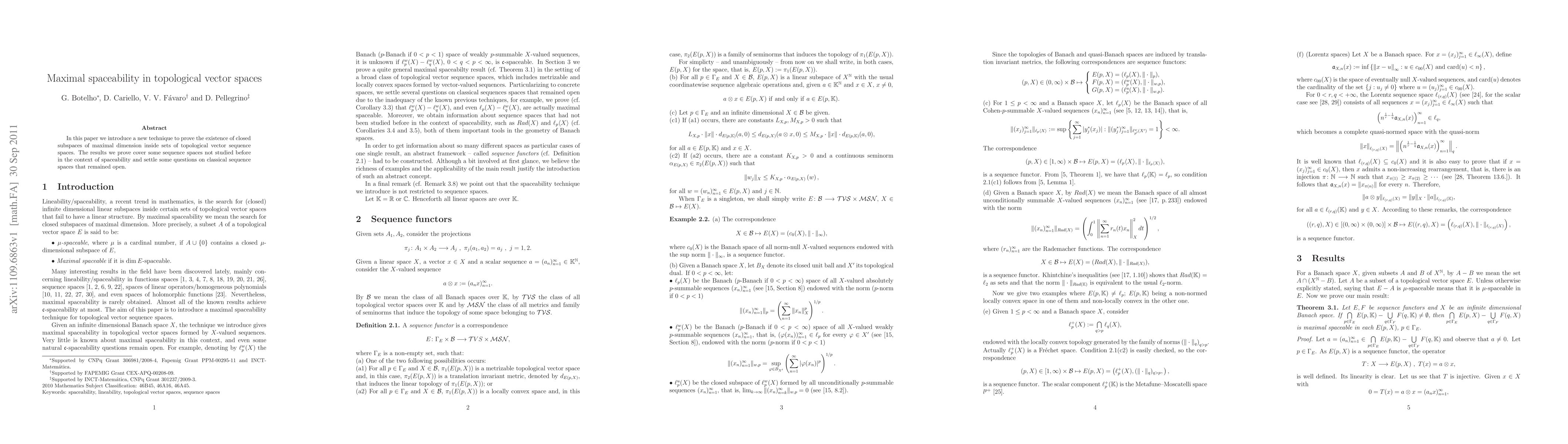 This paper presents a novel method to demonstrate the existence of closed subspaces of maximal dimension within certain topological vector sequence spaces, addressing previously unexplored sequence spaces and resolving outstanding questions in classical sequence spaces.