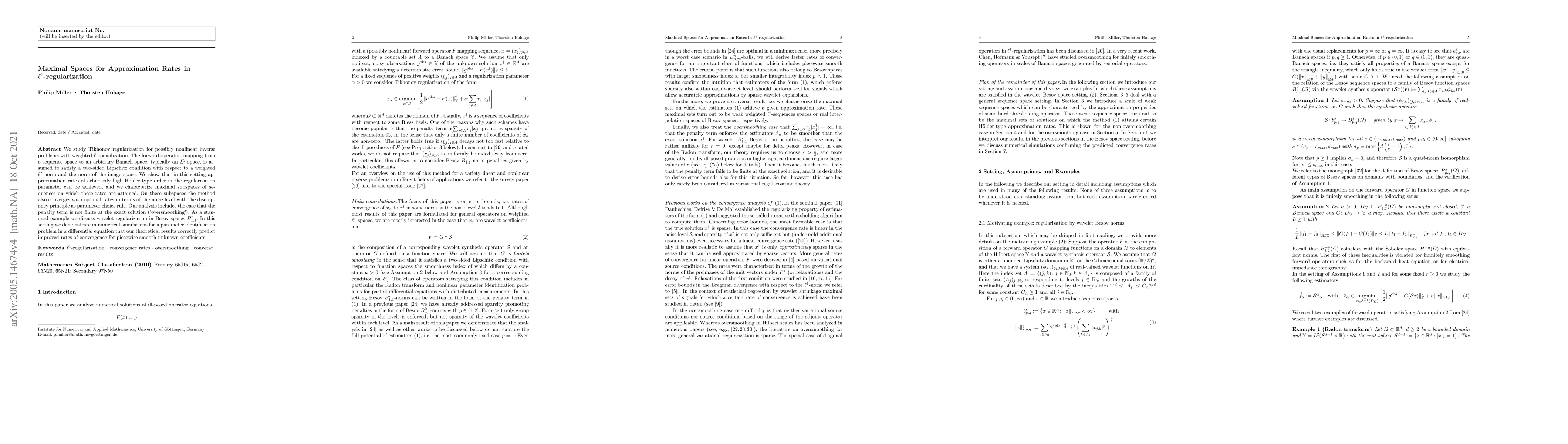 This paper investigates Tikhonov regularization with $\ell^1$-penalization for nonlinear inverse problems, showing that high-order approximation rates can be achieved under certain conditions. It identifies maximal subspaces where optimal convergence rates are realized, even in cases of oversmoothing, and validates the theoretical findings with wavelet regularization in Besov spaces.
