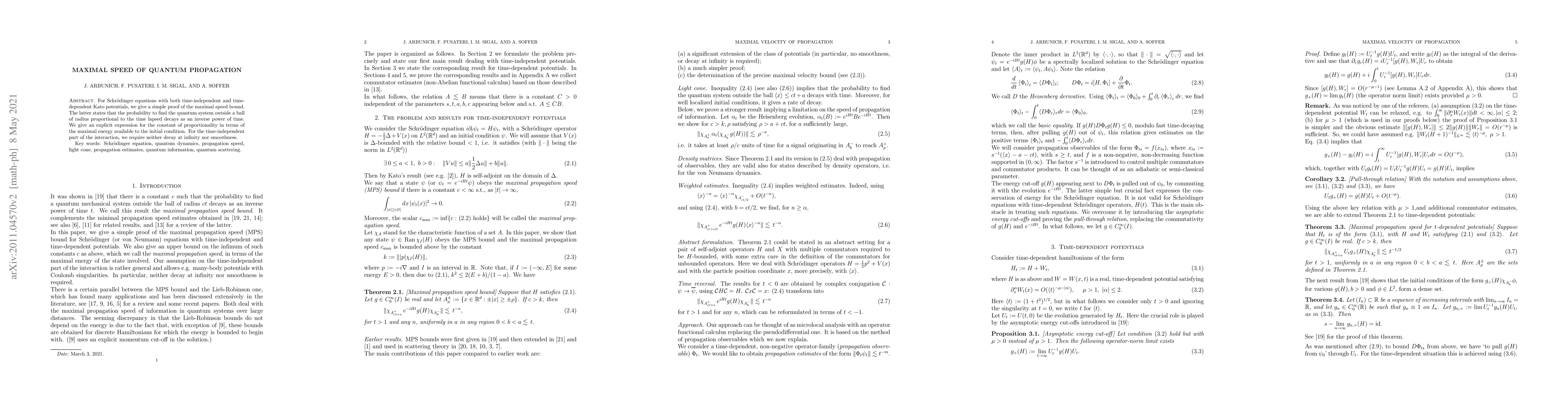 This paper provides a proof for the maximal speed bound in quantum propagation, demonstrating that the probability of finding a quantum system decays inversely proportional to time, with an explicit expression for the decay constant linked to the system's maximal energy. It applies to both time-independent and time-dependent Kato potentials without requiring decay or smoothness conditions.