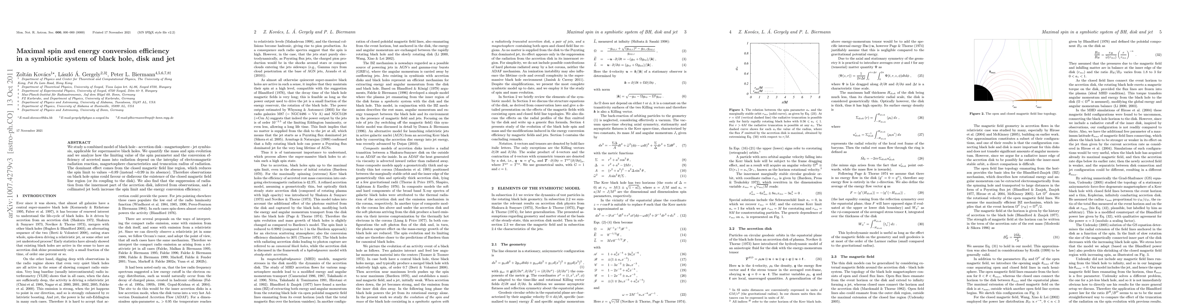 Researchers study the spin and energy conversion efficiency of a black hole accretion disk system, finding that a magnetic field line region can limit spin to ~0.89, while suppression of radiation from the innermost part increases spin and energy conversion efficiency.