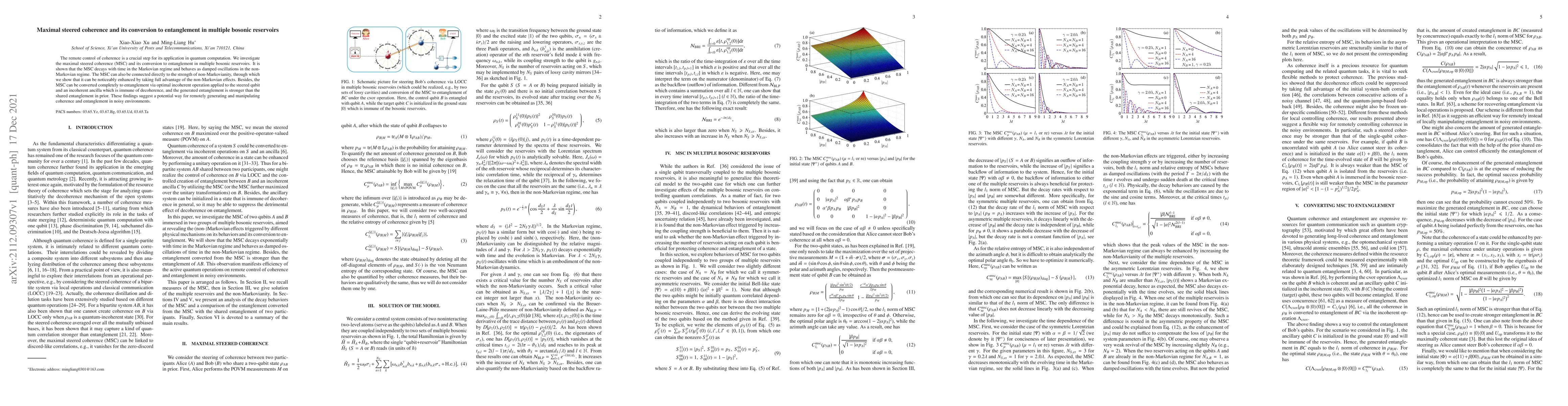 This paper explores the maximal steered coherence (MSC) in multiple bosonic reservoirs, demonstrating its decay and oscillatory behavior under different regimes. It reveals that MSC can be significantly enhanced by leveraging non-Markovian effects and can be fully converted to stronger entanglement through optimal incoherent operations.
