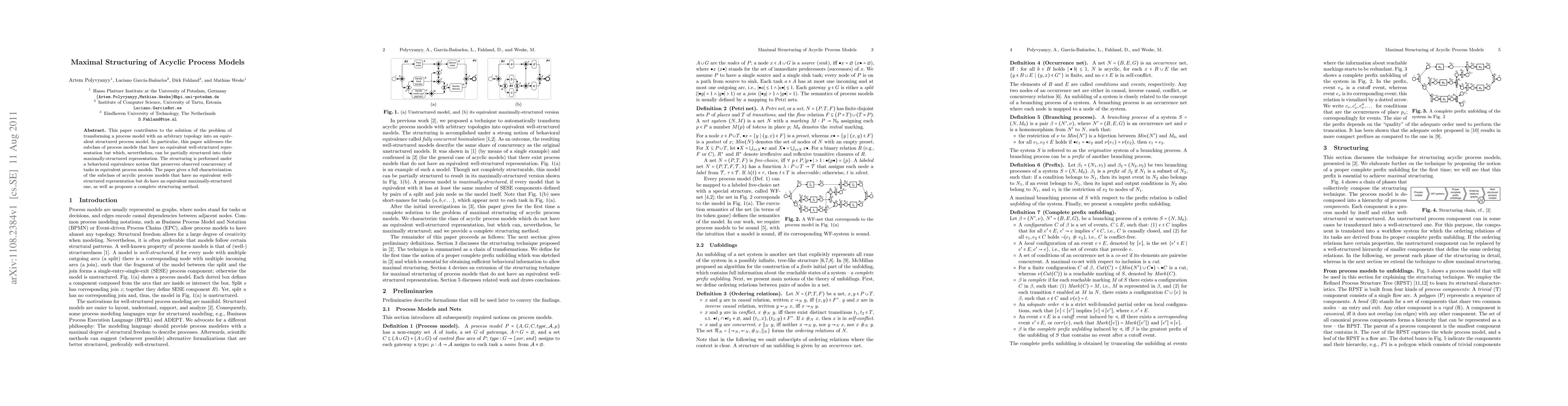 This paper contributes to the solution of the problem of transforming a process model with an arbitrary topology into an equivalent structured process model. In particular, this paper addresses the subclass of process models that have no equivalent well-structured representation but which, nevertheless, can be partially structured into their maximally-structured representation. The structuring is performed under a behavioral equivalence notion that preserves observed concurrency of tasks in equivalent process models. The paper gives a full characterization of the subclass of acyclic process models that have no equivalent well-structured representation but do have an equivalent maximally-structured one, as well as proposes a complete structuring method.