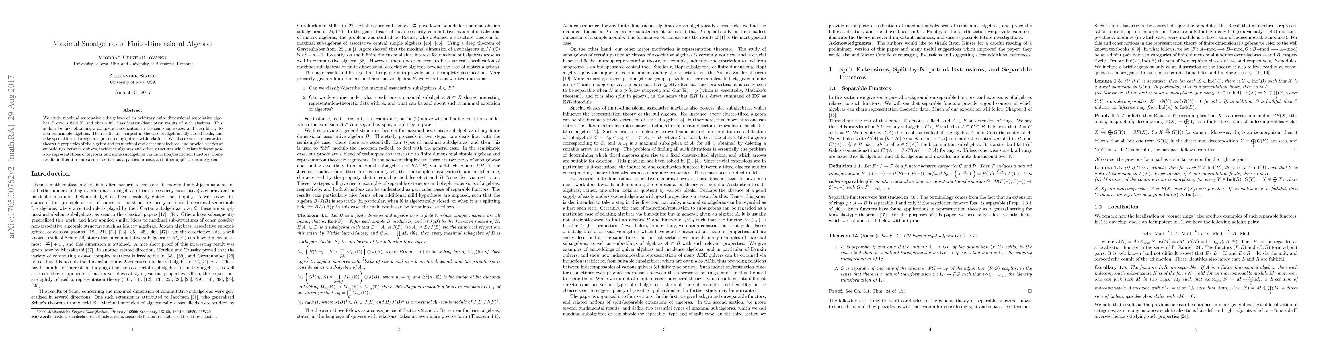 This paper classifies maximal subalgebras of finite-dimensional algebras over fields, achieving full descriptions through a detailed study of semisimple cases and extending to non-semisimple algebras. The results are most precise for algebraically closed fields and include special forms for algebras defined by quivers with relations.